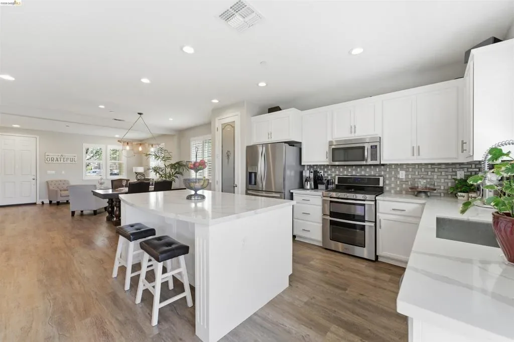 Welcome to this beautifully upgraded home in Pittsburg’s sought-after Greystone community – where modern design meets everyday functionality. Built in 2016, this 4-bedroom, 2.5-bath residence offers 2,390 sq ft of thoughtfully designed, light-filled living space that truly delivers. The expansive open-concept layout creates a seamless flow between the kitchen, living, and dining areas – perfect for both elevated entertaining and comfortable daily living. At the center of it all, the stunning kitchen features an oversized island, upgraded countertops, designer backsplash, gas double oven, and abundant cabinetry. Upgrades throughout include new flooring on the main level, custom interior shutters, and enhanced recessed lighting, adding warmth and a refined, modern feel. Upstairs, all four bedrooms provide privacy and space, including a generously sized primary suite retreat. Major system improvements offer peace of mind, including a new A/C unit, new water heater (2025), new main water line from the street, EV charging outlet (220V), smart thermostat, and additional garage storage. A true move-in ready opportunity combining style, comfort, and convenience in one exceptional home.
