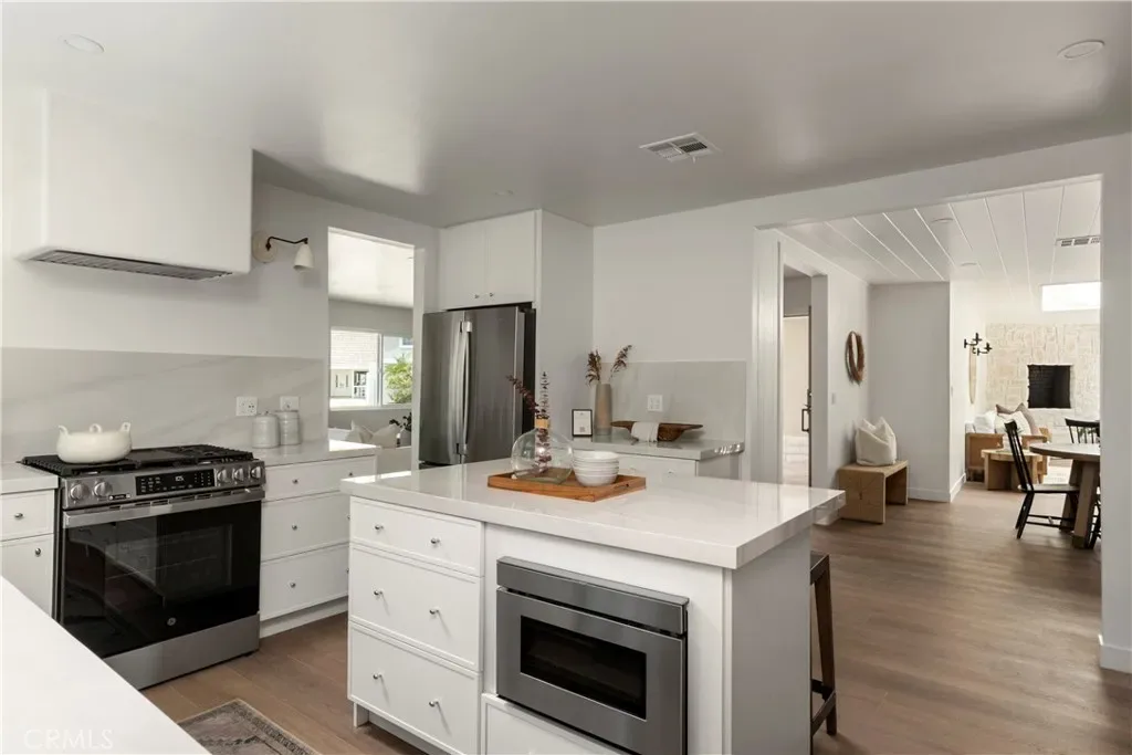 Tucked away at the end of a quiet cul-de-sac, this fully renovated single-story residence offers an unparalleled blend of sophisticated design and everyday comfort. Spanning 1,933 square feet, the 3-bedroom, 2-bathroom home has been reimagined with no expense spared. The heart of the home is a true chef’s kitchen, featuring custom cabinetry with ample storage, a bay window over the farmhouse sink with a premium Brizo faucet and exquisite Bianco Lasa porcelain countertops. Transition into the sun-drenched family room, where soaring skylights and a striking El Dorado Stone fireplace create an inviting centerpiece. For more intimate gatherings, the secondary living room showcases a bespoke plaster-finished fireplace next to the formal dining room with a Rejuvenation chandelier. Outside, your private oasis awaits with a sparkling pool; perfect for summer entertaining and a fully secured yard on all sides. Other upgrades include a new HVAC and new windows and sliders. The property is also within walking distance to top-tier schools and the sprawling Tri-City Park.