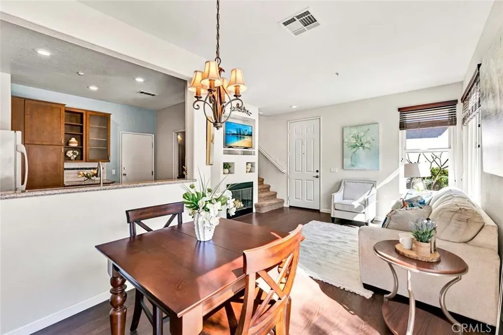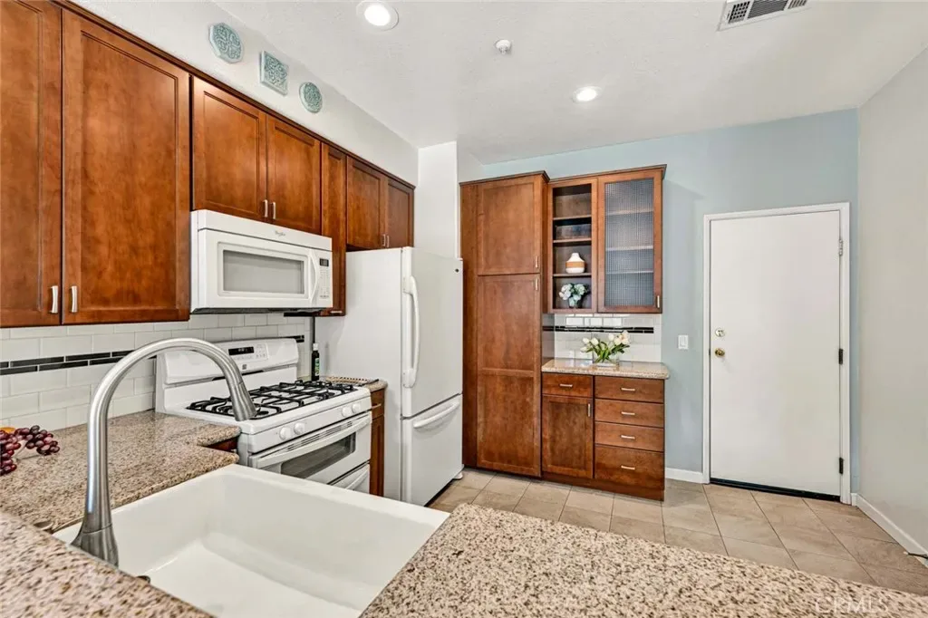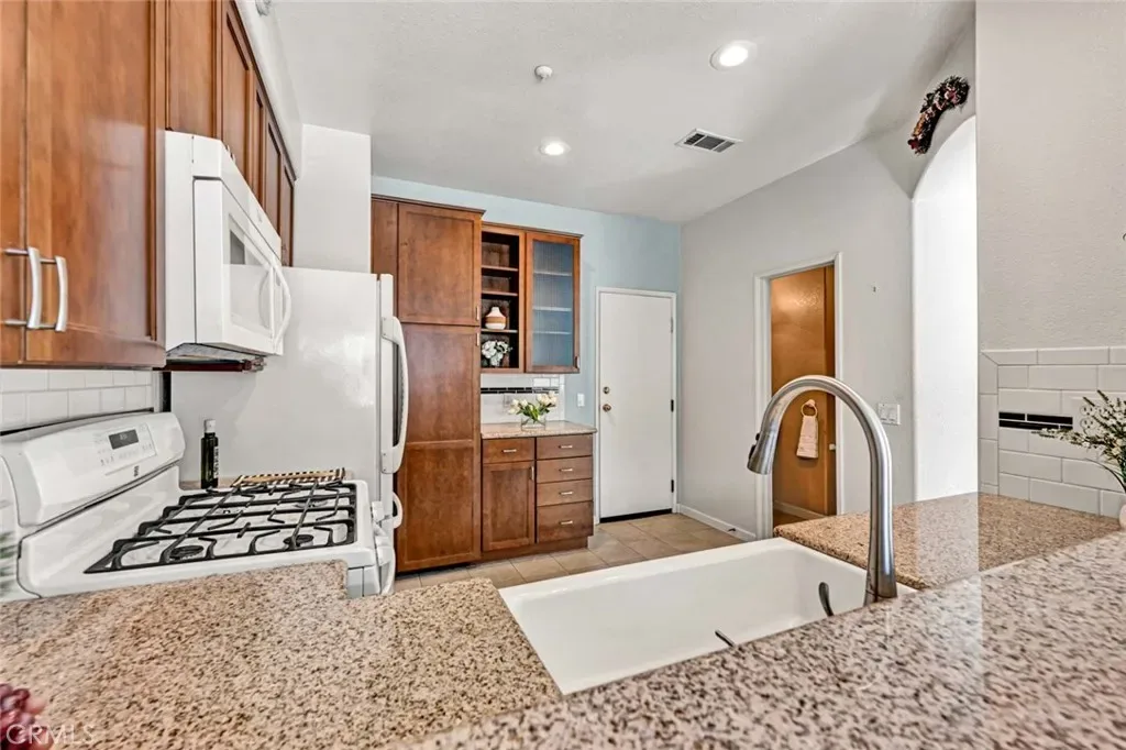 Beautifully updated & remodeled,this detached Residence offers no shared walls and is ideally situated on a quiet interior tract w/in the highly sought-after gated community of Altura.With low HOA dues & a resort-style setting,residents enjoy access to a sparkling pool,relaxing spa,clubhouse,fitness center,& recently upgraded high-speed fiber optic internet—all w/in a well-maintained,family-friendly neighborhood conveniently located across the street from Champions Sports Complex.Enter thru a private gate,you’re welcomed into a true gardener’s paradise featuring plumeria trees,succulents,vibrant rose garden w/ brick inlays,& a beautifully designed,extra-large patio perfect for entertaining.The backyard offers privacy and creates a tranquil garden oasis.Step through the beautiful front door into a spacious living room anchored by a large built-in fireplace w/ media niche.Features include laminate flooring,recessed lighting,wood window blinds,dual-pane vinyl windows,extra-tall baseboards,& a nice flow into the formal dining room w/ chandelier & glass vinyl slider providing direct access to the patio.The showpiece kitchen is extensively upgraded w/ granite countertops,hardwood cabinetry including glass-faced cabinets,easy-close drawers,Lazy Susan,spice rack pull-out,large pantry w/ multiple pull-outs,& designer tile backsplash.A Kohler white farm sink w/ upgraded faucet,Kenmore 4-burner range w/ extra broiler,Whirlpool microwave & dishwasher,Maytag refrigerator,recessed lighting, & direct garage access complete this impressive space.Upstairs, the massive primary suite (14’ x 15’) boasts vaulted ceilings,extra-wide picture windows streaming natural light,high-end translucent Hunter Douglas shades,& a large walk-in closet w/ extensive built-in organizers including shoe racks.The remodeled primary bathroom showcases granite counters,dual sinks w/ upgraded fixtures,dual oval designer mirrors,newer wood vanity,upgraded lighting,& soaking tub & shower featuring designer tiled walls,& shampoo niche.The hallway bathroom is beautifully upgraded w/ granite counters,newer wood vanity,upgraded lighting & fixtures,shower wand,& shower over tub w/ designer tile insets.Newer HVAC system,Newer water heater,Newer LiftMaster garage opener,Two-panel modern doors throughout,Washer & Dryer,Freshly painted exterior,built-in garage cabinetry w/ sliding doorsThis exceptional home offers upgrades at every turn,combining privacy,thoughtful design,& resort-style living—A true gem.