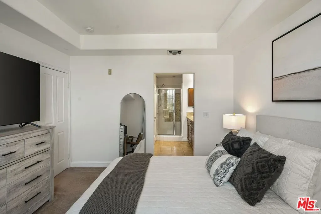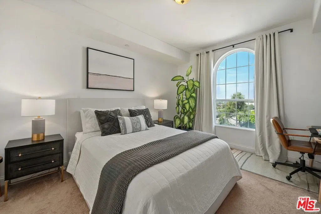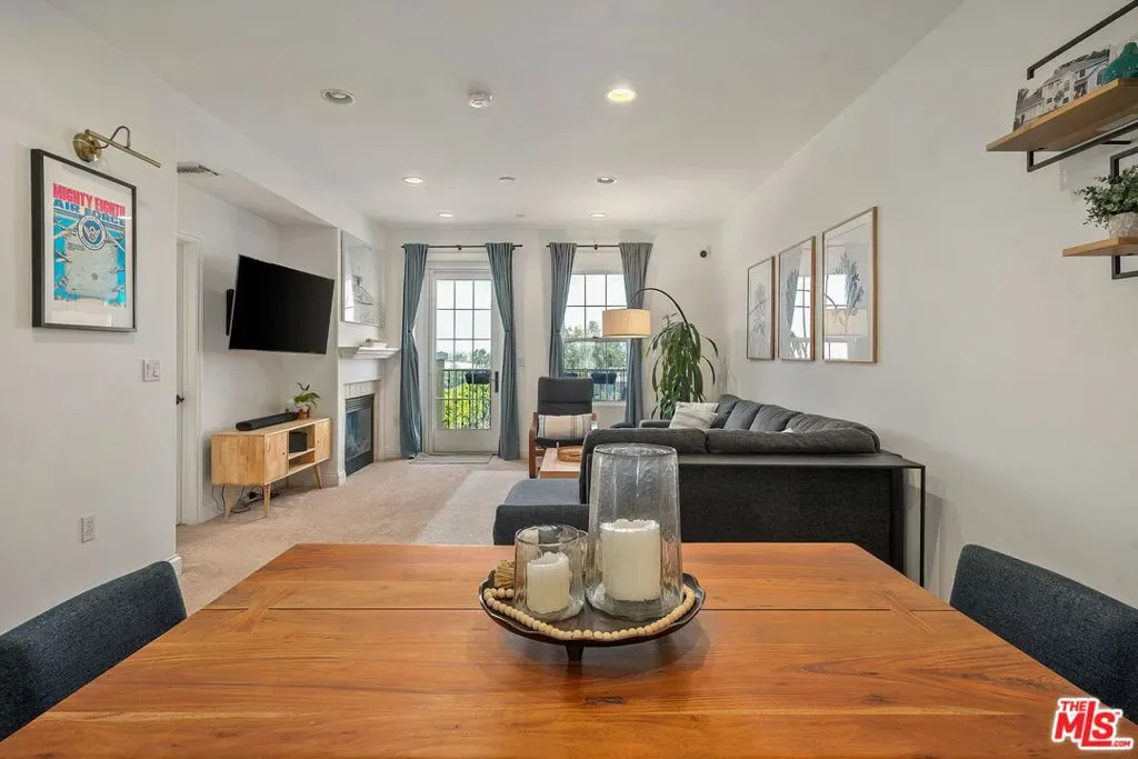 Welcome to 12975 Agustin Place #418, a stunning top-floor corner residence in Playa Vista’s highly sought-after Carabela community. Bathed in natural light from its prime north-west exposure, this beautifully updated home offers an exceptional blend of comfort, style, and convenience. A formal entry leads into a bright and airy living room featuring soaring ceilings, a cozy gas fireplace, and seamless access to a spacious private balcony perfect for enjoying breathtaking city views and golden-hour sunsets. The open-concept layout flows effortlessly into a well-appointed kitchen, complete with stainless steel appliances, granite countertops, upgraded fixtures, and abundant storage. The adjacent dining area serves as a natural extension of the space, ideal for both casual meals and entertaining, with additional bar seating for added versatility. This thoughtfully designed home features two generously sized bedrooms, offering flexibility for guests, a home office, or both. The guest bathroom has been tastefully refreshed with updated hardware, shelving, and a modern vanity. The primary suite is a serene retreat, filled with natural light and complete with a spacious walk-in closet and a dual vanity bathroom. Additional highlights include a brand new in-unit washer and dryer, recessed lighting, double paned windows, and the privacy and tranquility of a top-floor corner location. Ideally situated just moments from Concert Park, Whole Foods, Cinemark, The Resort gym and pool, and an array of dining, shopping, and outdoor spaces, this home offers the very best of Playa Vista living.
