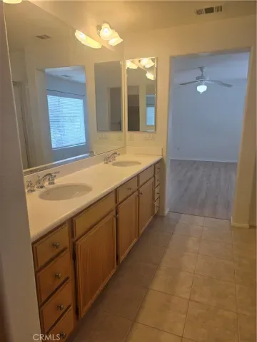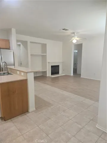 This is a contemporary two-level home in North Pomona with a front porch in a Planed Development Community. The first floor features a spacious living room with vaulted ceilings. A large open kitchen has a gas/range oven, microwave, dishwasher, refrigerator and island with Corian countertop and lost of pantry space. The kitchen opens to the family room with a fireplace. There is also a bedroom and a full bathroom downstairs. The stairway leads to a loft featuring a built-in desk and a hallway linen closet. The main bedroom has a walk-in closet, double vanity, large bathtub and shower. The two other bedrooms share a bathroom with a double vanity. Off the loft is a laundry room with hookups for a washer and dryer. Laminate flooring throughout the house. Cooling and heating are central throughout the house. Ceiling fans are in all bedrooms and family room. The backyard includes a covered patio area. The Housing Provider covers for the Gardener and the Home Owners Association fees. The hared community area features a play area and a pool and spa. No pets. It is a non-smoking property. There is no sign on the property.