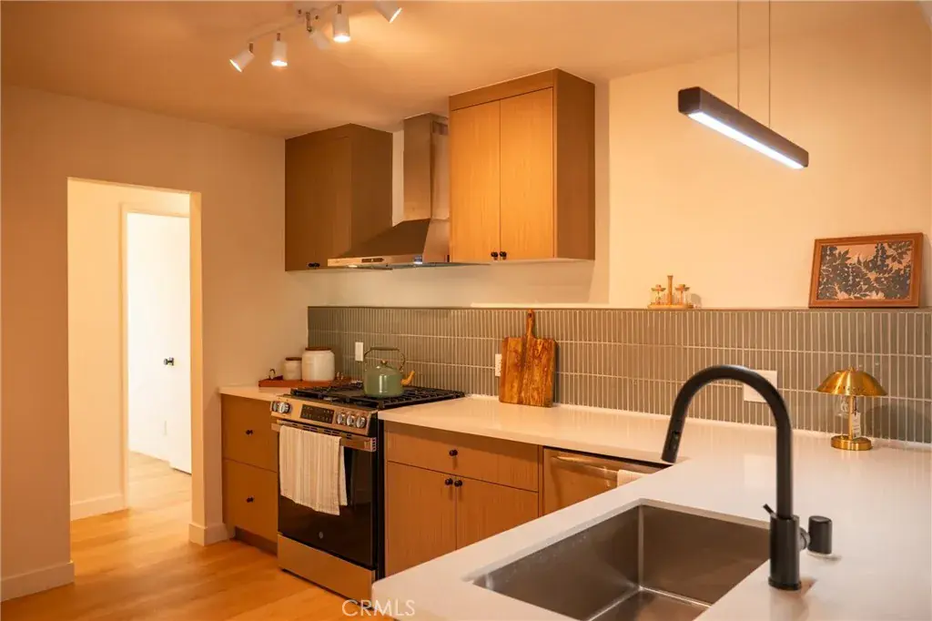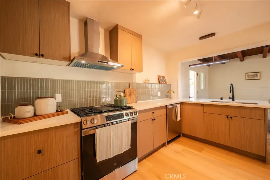 Situated on an expansive 8,000 square foot lot, the property features 3 bedrooms and 2 bathrooms with nearly 1,500 square feet of thoughtfully designed living space. The interior has been tastefully renovated, showcasing a modern kitchen with European-style flat panel cabinetry, designer tile backsplash, and brand-new stainless steel appliances. Updated bathrooms and luxury vinyl flooring throughout create a cohesive, clean, and contemporary feel.