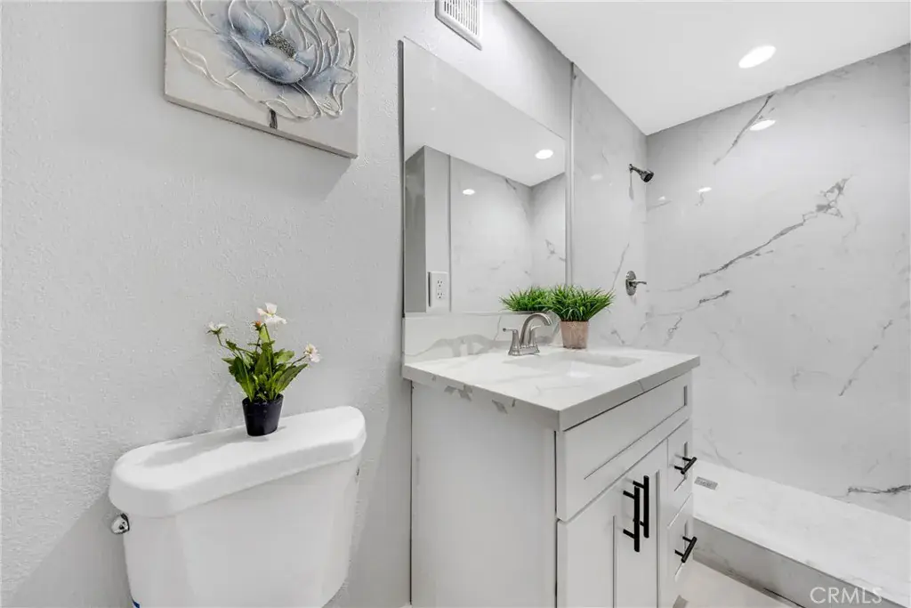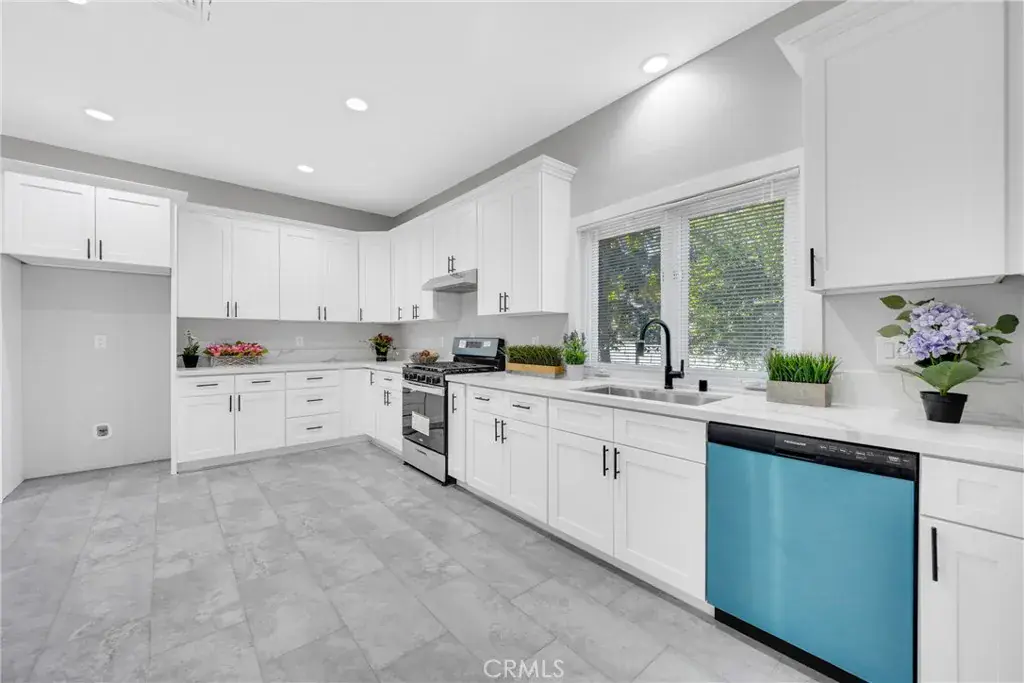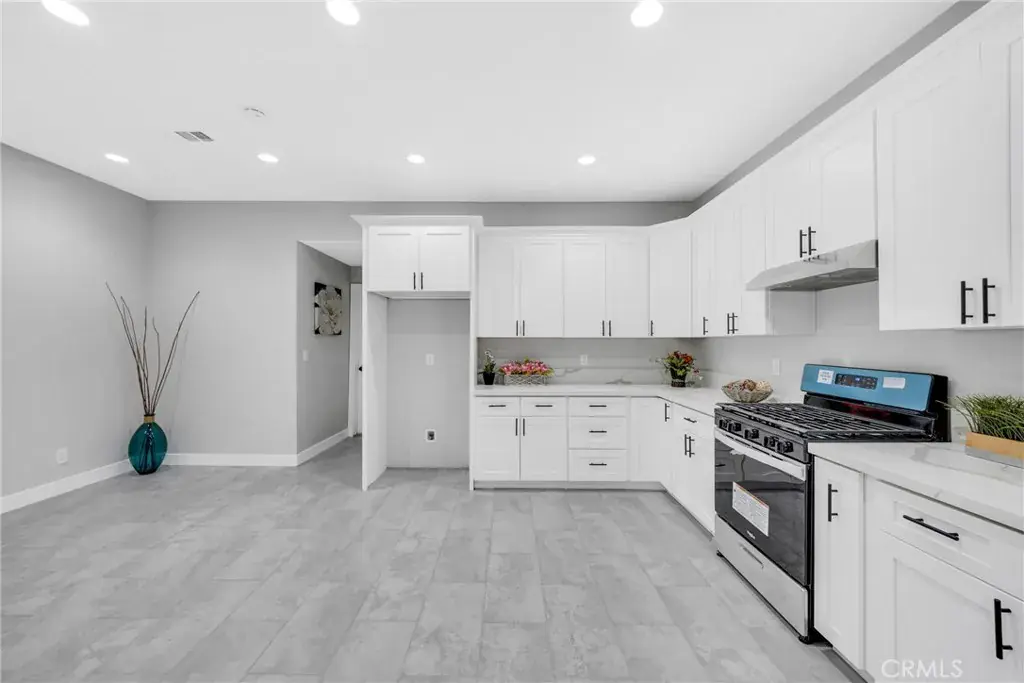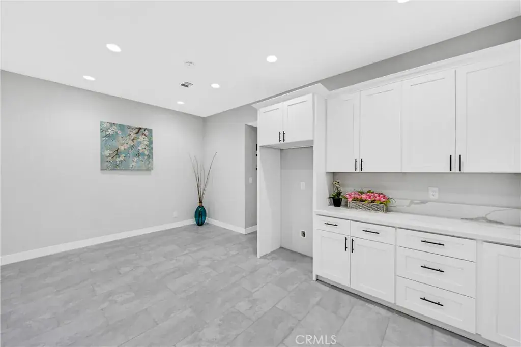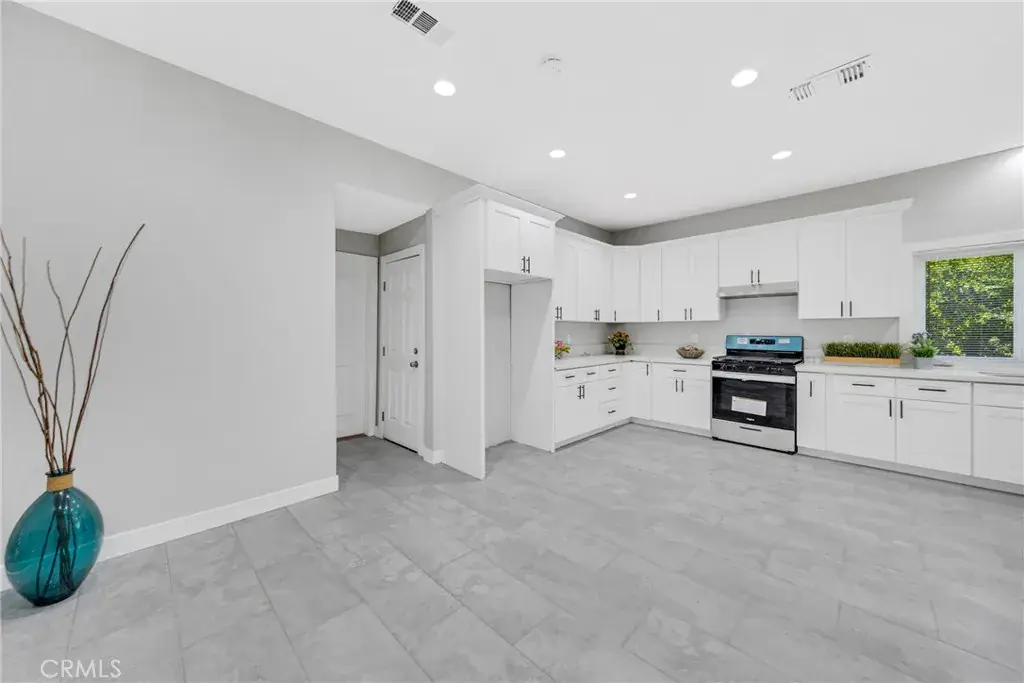 The kitchen is extremely spacious. There are new white shaker cabinets along with quartz countertop. All new fixtures