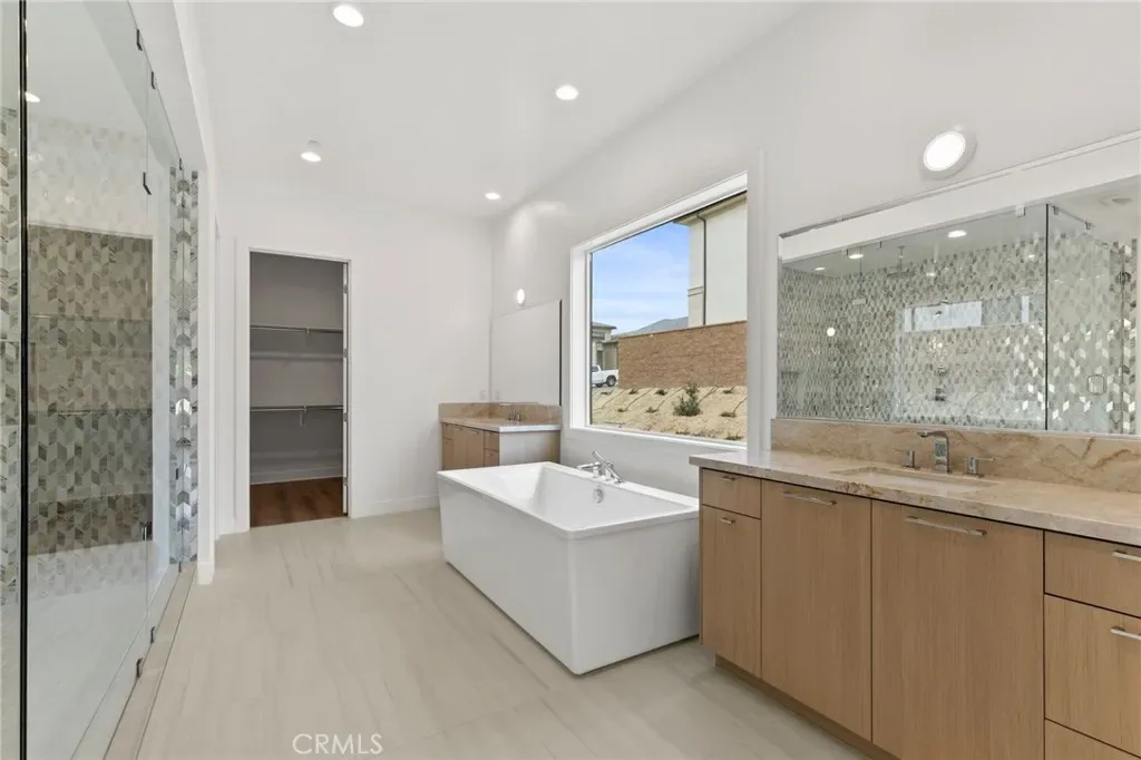 Welcome to The Ridge at Bella Vista, Toll Brothers’ final community in the desirable Porter Ranch master plan. One of only seven 1-story homes remaining. This equestrian-zoned homesite offers expansive, private backyards with direct access to the equestrian trail. The Alta Loma floor plan features a welcoming covered entry, formal living room, spacious office, and an expansive great room with 11’ coffered ceilings, private wet bar, and 20’ x 8’ multi-stacked glass doors opening to a backyard oasis. Enjoy luxury outdoor living with a 42” courtyard fireplace. The gourmet kitchen includes a large center island with breakfast bar, ample counter and cabinet space, dedicated workspace, and walk-in pantry. Upgraded white craftsman cabinets throughout with a two-tone color island in naval. The primary suite offers a coffered ceiling, 12’ x 8’ stacked doors to the scenic backyard, walk-in closet, and spa-inspired bath with dual vanities, soaking tub, luxe shower, ceiling-mounted shower head, and private water closet. Two flex rooms provide versatility for office or den use. Secondary bedrooms include private baths. Additional features include a powder room, drop zone, centrally located laundry, and abundant storage. Surrounded by nature, this home offers a peaceful retreat away from the city.