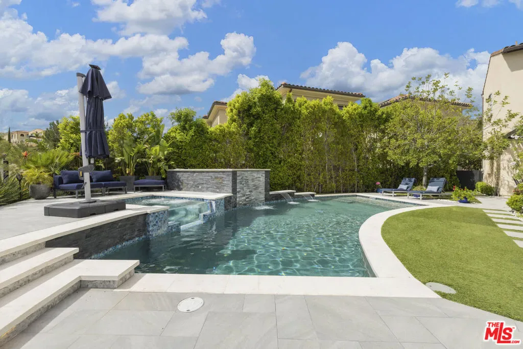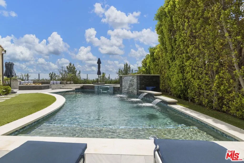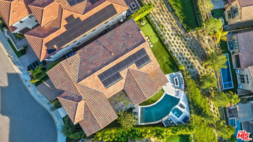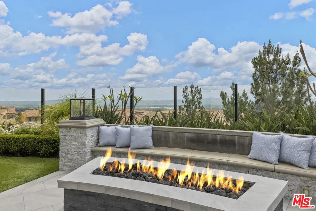 Experience the pinnacle of luxury living in this highly sought after guard-gated Westcliffe estate, located within the prestigious Palisades Collection. Positioned on a flat street within a private cul-de-sac and flanked by mature olive trees upon entry, this model-like home showcases timeless English-inspired architecture with an elegant exposed brick exterior, custom paver driveway, and grand travertine tile entry steps that create a striking first impression. Inside, a breathtaking grand foyer welcomes you with a dramatic spiral staircase, soaring ceilings, and a stunning modern chandelier, all enhanced by sun-filled panoramic valley views. Designed for seamless indoor-outdoor living, expansive 12-foot wall-to-wall pocket doors open to a truly exceptional backyard retreat featuring 180-degree jetliner views from sunrise to sunset. The resort-style grounds are an entertainer’s dream, complete with a Pebble Tec saltwater pool, elevated spa with upgraded acrylic glass, outdoor fireplace, custom fire pit with king bench seating, and a fully equipped outdoor kitchen/BBQ station with bar counter. The L-shaped yard design features $130K in mature landscaping for ultimate privacy, while a luxury artificial putting green elevates the outdoor experience. Spanish tile finishes and thoughtfully designed patio spaces create the perfect setting for dining and gatherings. At the center of the home, the designer chef’s kitchen impresses with an expansive quartz island, Kitchenaid built-in refrigerator, dual ovens, 6-burner gas range, upgraded hood, and extended cabinetry with 3-inch thick countertops. It flows seamlessly into the formal dining area with additional custom cabinets and is complemented by a walk-in pantry and a bonus office featuring additional built-in storage space. Throughout the home, extensive upgrades and custom finishes enhance both style and function, including two added modern fireplaces, a fully enclosed movie theater room with built-ins, designer chandeliers and lighting, custom wall treatments such as a tiled staircase and feature walls, and durable luxury vinyl flooring upstairs. The upgraded garage offers built-in cabinets and storage, racks, and an enhanced door system.The primary suite serves as a private retreat, highlighted by a stunning balcony with sweeping views, a custom-designed walk-in closet, and a separate lounge area with additional cabinetry. Completing the home are thoughtful lifestyle enhancements such as a medical-grade whole-house filtration system, remote-controlled outdoor ceiling fans, upgraded front door and lighting, and carefully curated modern finishes throughout. This exceptional residence offers a rare blend of luxury, privacy, and refined design, perfectly suited for both elevated entertaining and everyday living. Ideally located just a short distance from premier amenities including Whole Foods, AMC Theatres, high-end dining, highly rated schools, convenient freeway access, parks, hiking trails, and more.