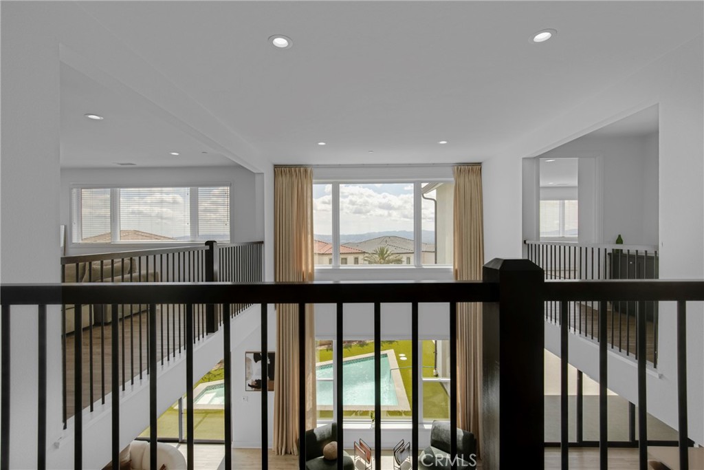 Step into luxury with this stunning Farmhouse-style estate in the exclusive, 24-hour guard-gated community of Westcliffe at Porter Ranch. This Stunning Harbor model welcomes you with a grand foyer, a formal dining room, and a separate powder room for guests. Gorgeous sweeping views from the second floor. Discover 5 spacious bedrooms, each with its own private en suite, including a conveniently located downstairs suite perfect for guests or multigenerational living. The great room flows seamlessly into a designer kitchen adorned with premium WOLF appliances, quartz countertops, and an oversized island perfect for entertaining. Upstairs, the luxurious primary suite features a massive walk-in closet, while a spacious loft provides additional living or flex space with breathtaking views. Step outside to your fully landscaped backyard in-ground pool and putting green. Ready just in time for summer entertaining!! Located minutes from RALPHS, WHOLE FOODS, AMC THEATER, RESTAURANTS and top-rated public PRCS and private Sierra Canyon schools, and the exciting new 50-acre community park.