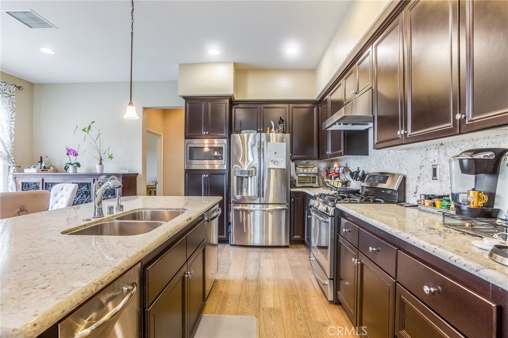 Luxurious two-level townhome located in the desirable private guard-gated community of Seville at Aldea in Porter Ranch. Built in 2014, this home features 4 bedrooms and 3 bathrooms, including a convenient bedroom and full bath on the first level. The open-concept floor plan offers a spacious family room and dining area with wood flooring and a gourmet kitchen featuring a large center island, granite countertops with full backsplash, and stainless-steel appliances including range/oven, microwave, dishwasher, trash compactor, and refrigerator (included in lease). The second level offers a spacious primary suite with walk-in closet and custom built-ins, and an ensuite bathroom with soaking tub, separate shower, and dual sinks. Two additional bedrooms, another full bathroom with dual sinks, and a dedicated laundry room also located upstairs. . Additional highlights include a private patio ideal for entertaining, and a two-car direct access garage equipped with an electric vehicle charger. Community amenities include a resort-style pool and spa, outdoor BBQ area with seating and TVs, fireplace lounge, playground, and wading pool. Conveniently located near the 118 Freeway, shopping, dining, and entertainment at The Vineyards at Porter Ranch, and close to Porter Ranch Community Park. Located within the Porter Ranch Community School district (per LAUSD; tenant to verify school districts & enrollment availability). You’re cordially invited to call Seville at Aldea your new home!