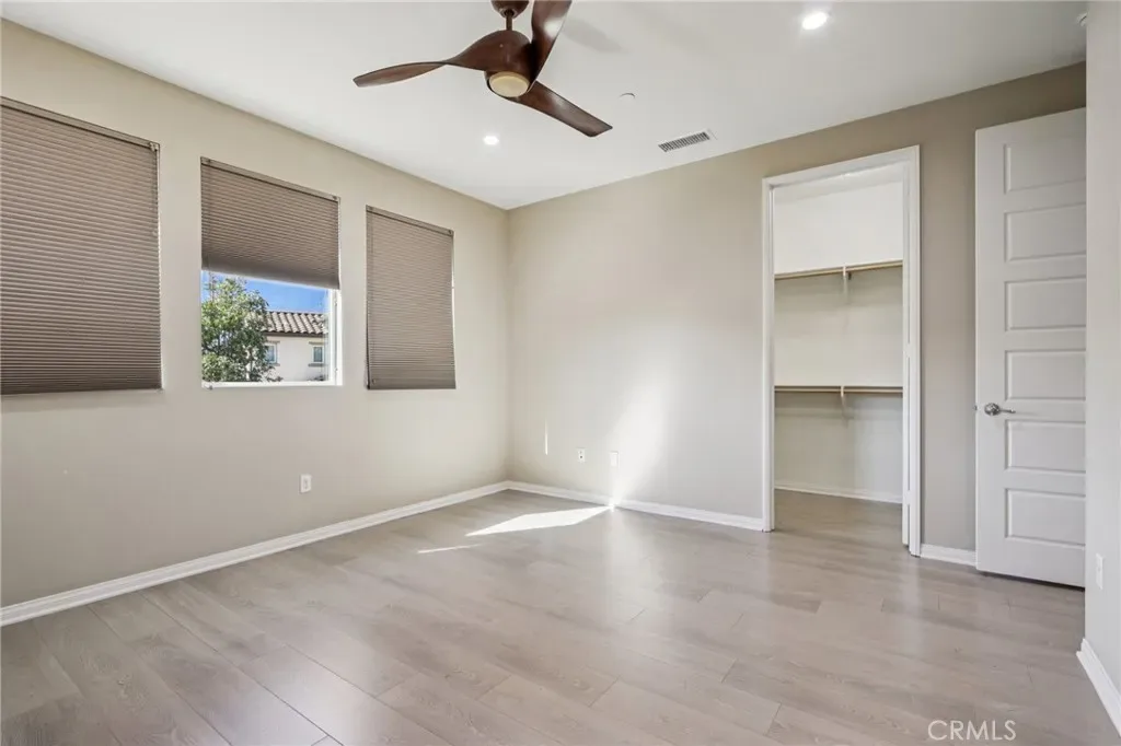 GUARD GATED ALDEA COMMUNITY! This is your chance to live in the resort-like Aldea community. Enter through your own private courtyard into a formal entryway with coat closet and direct access to a 2-car garage. Once upstairs you walk into a large, open floorplan with new laminate floors, high ceilings, recessed lighting, and new paint. The kitchen has plenty of counter space with a large island, and upgraded Smart GE appliances! The primary suite has a large walk-in closet and a spacious bathroom with a large soaking tub and separate shower. The oversized windows give beautiful views and tons of sunlight. Your laundry room is conveniently located directly outside of the master bedroom for easy access! The large second bedroom is perfect for a guest room, or office. Each room has high-end Minka ceiling fans, there’s a Nest thermostat, and the house is wired for an EV charger in the garage. This community has a resort-like pool/spa area, and a guard. It sits next to the brand-new Vineyards shopping center with Whole Foods, Lure, AMC, gyms, and more!
