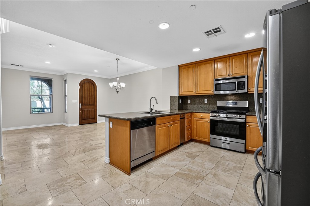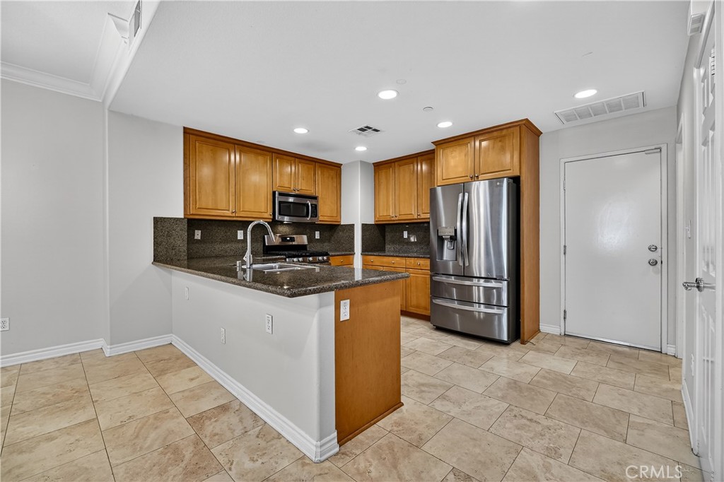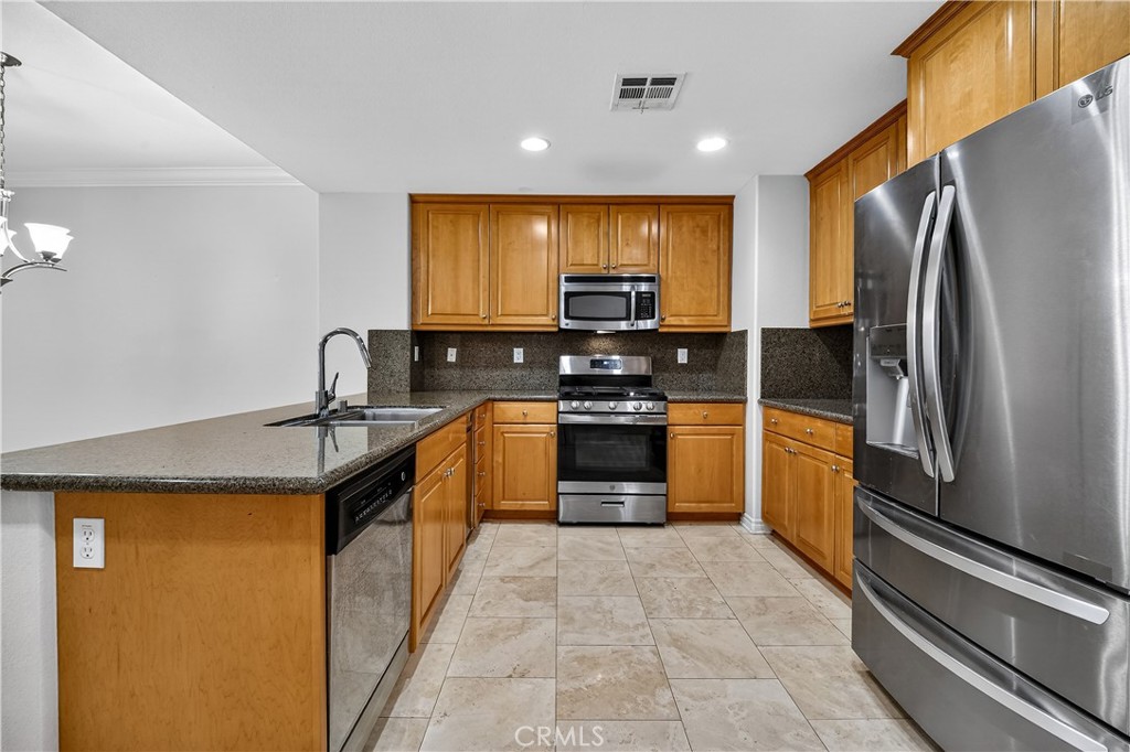 WELCOME TO YOUR NEW DREAM HOME! Located in the highly desirable, guard-gated community of Aldea at Porter Ranch, this beautifully maintained townhouse offers an exceptional blend of comfort, style, and convenience in the heart of Porter Ranch. This well-appointed home features an open and light-filled floorplan, enhanced by a combination of elegant travertine and new laminate flooring throughout. The spacious living and dining areas create a seamless flow, ideal for both everyday living and entertaining. The upgraded kitchen is complete with granite countertops, stainless steel appliances, and a brand new GE stove, delivering both functionality and modern appeal. Upstairs, you’ll find expansive bedrooms with abundant natural light, including a primary suite with a private balcony—perfect for enjoying your morning coffee or relaxing in the evenings. A conveniently located upstairs laundry area with washer and dryer hookups adds to the home’s thoughtful layout. Additional highlights include a direct-access two-car attached garage equipped with a smart garage opener. Residents of Aldea enjoy access to resort-style amenities, including a sparkling pool, spa, BBQ areas, playground, and outdoor entertainment spaces with TVs—creating a true community lifestyle experience. With 24-hour guard-gated security and controlled access, the neighborhood offers both privacy and peace of mind. Ideally located just moments from Whole Foods, AMC Theatres, and some of Porter Ranch’s best dining and shopping destinations, this home provides unmatched convenience. Situated within the Porter Ranch Community School zoning (tenant to verify), this is a rare opportunity to lease in one of the area’s most sought-after communities.