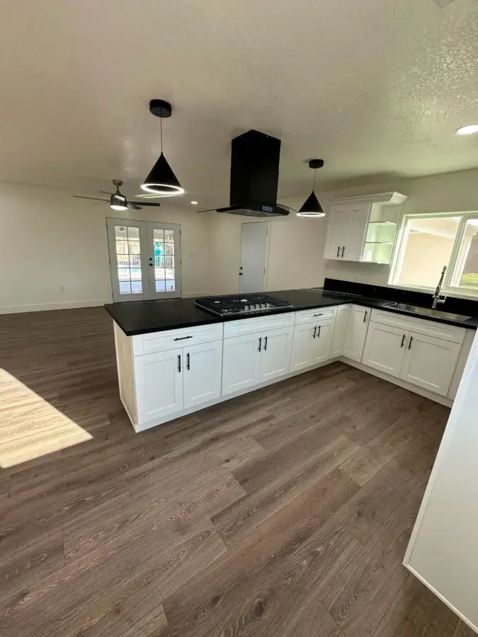 The home features an open and comfortable layout with new flooring, paint, lighting, and fixtures. The kitchen has been fully redone with new cabinets, countertops, and a built-in stovetop – ready for you to make it your own. Both bathrooms have been nicely updated, giving the whole home a clean ano