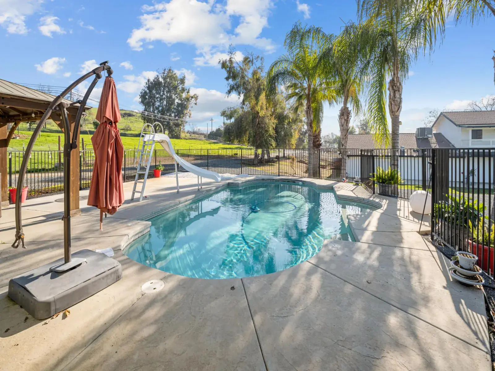 Looking for acreage to enjoy? This beautiful property has so much to offer. Current home owners made so much upgrades, including new septic, rv connections, new irrigation system, wrap around concrete, an areas designed for an outside bathroom has the plumbing ready for the new owner to continue. DG in all drivable areas. Has paid Solar, new exterior paint, a secondary water meter was recently installed. Beautiful mature trees. Not to mention, it has a beautiful pool for the hot summers. Come check it out and fall in love with this 3 bedroom 2.5 bath on over 5 acres of land with beautiful views. Give me a call to schedule your private showing.