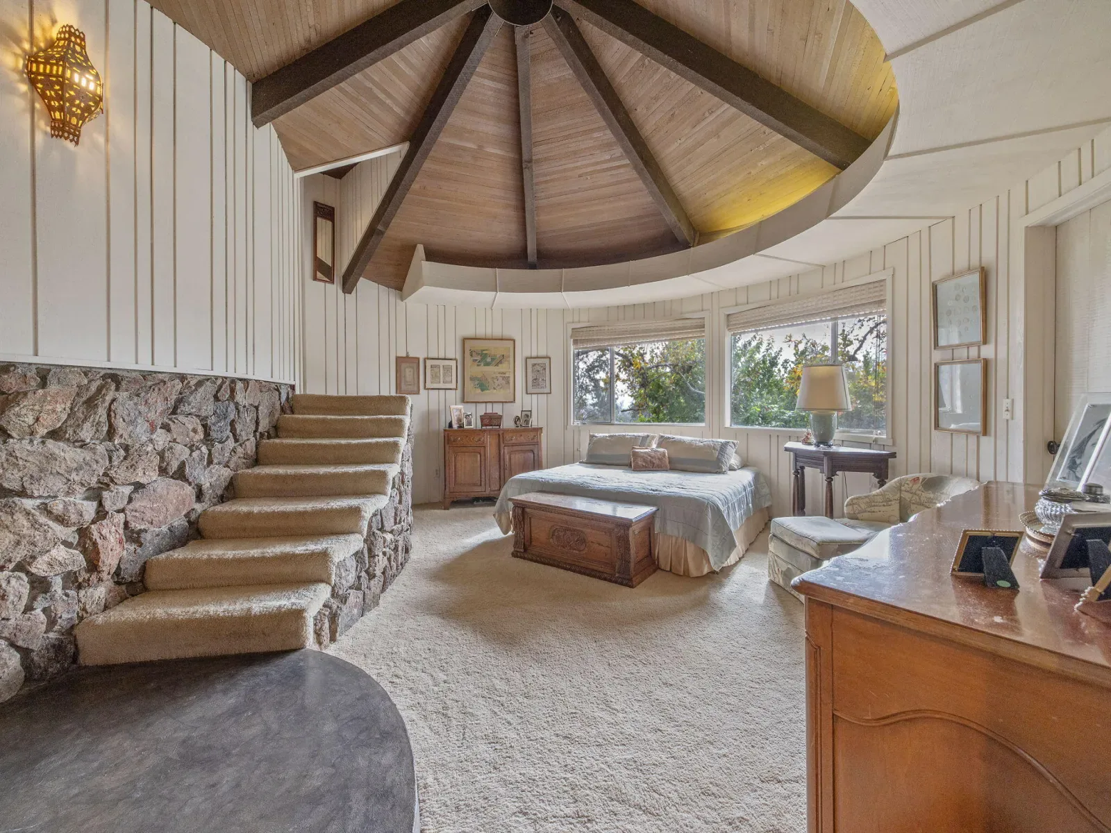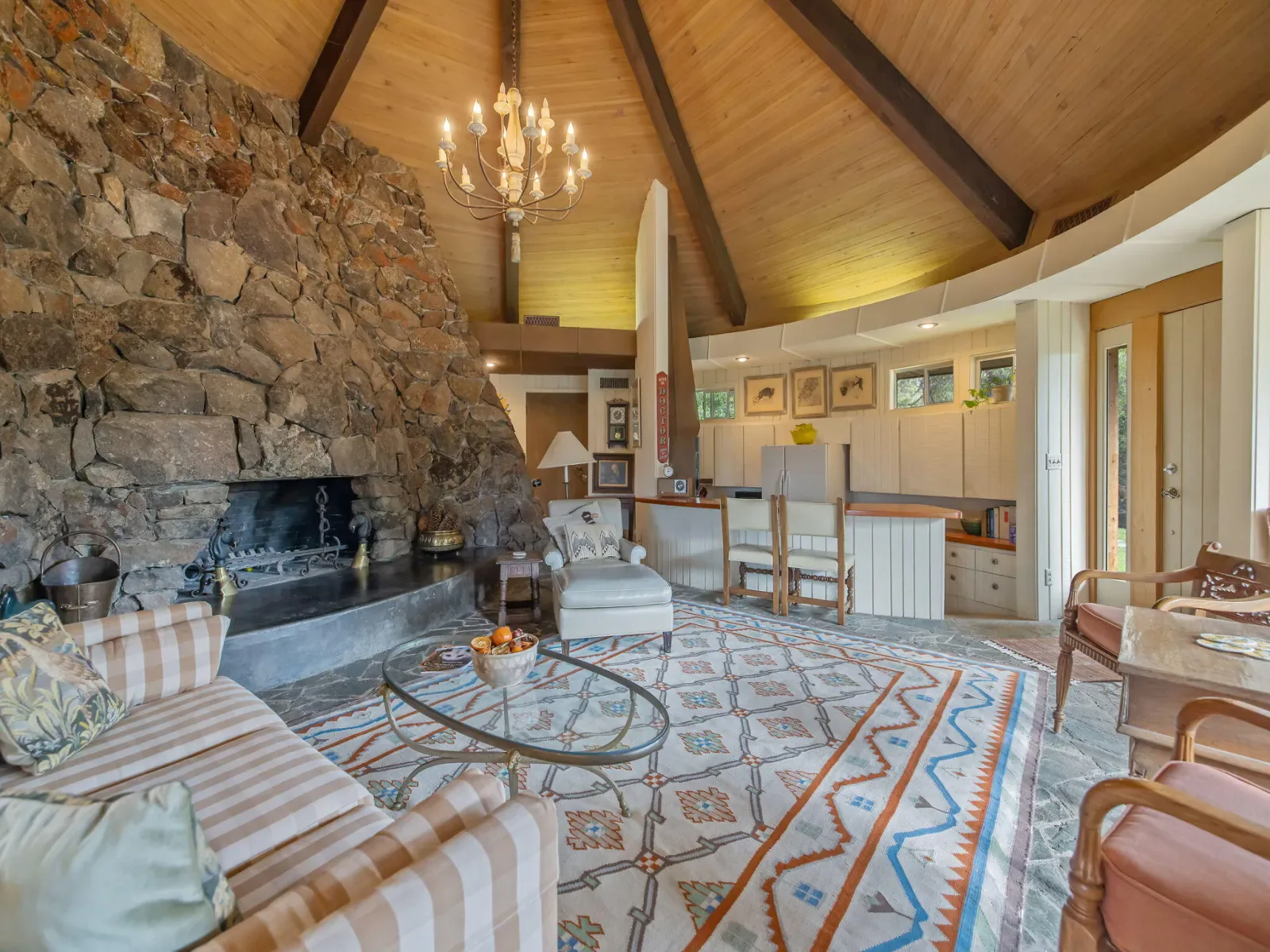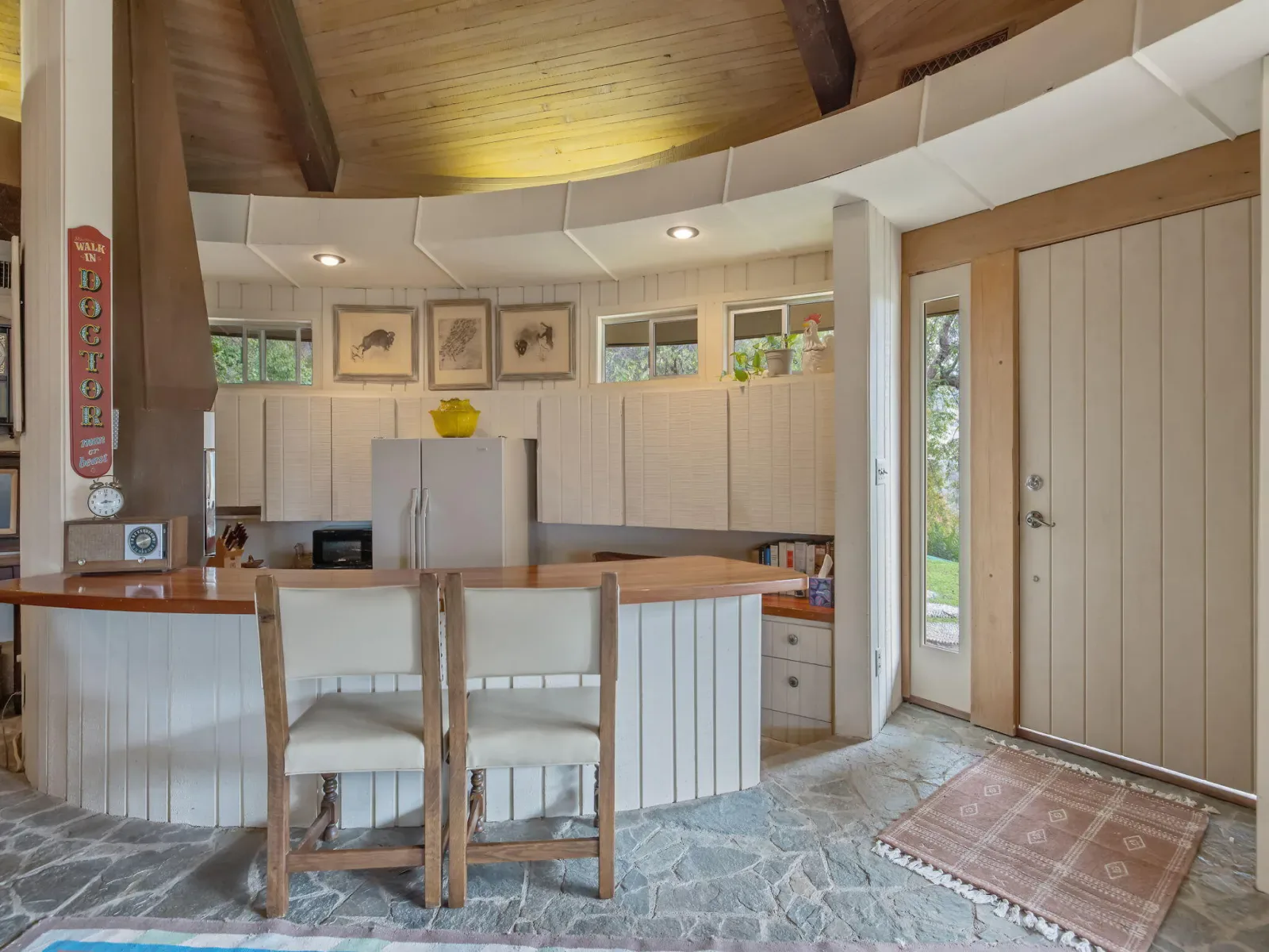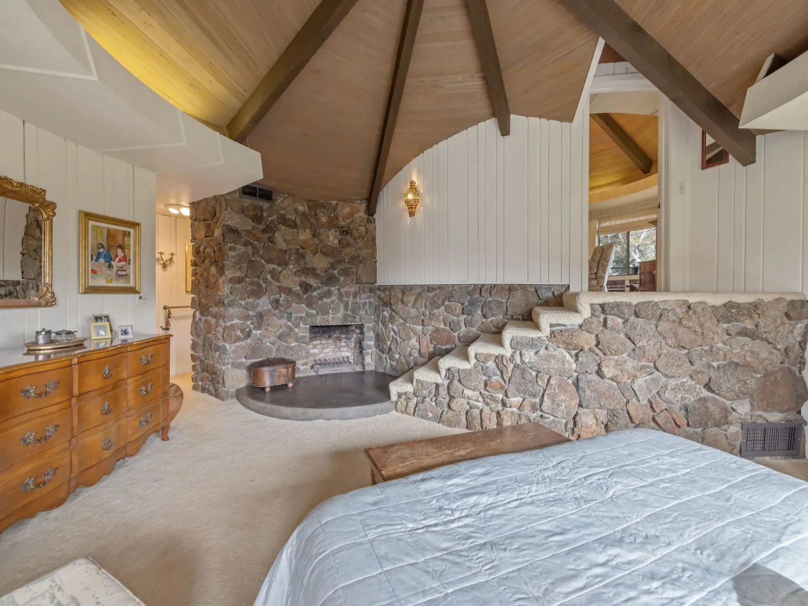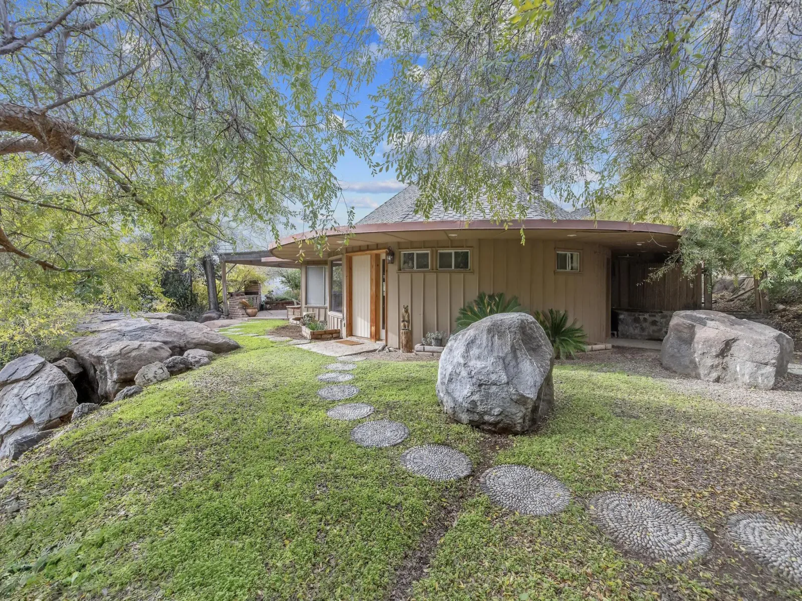 The second residence is a round 1 bedroom 1 bath showcase featuring an unforgettable fireplace that feels like functional art. Its outdoor kitchen expands the living space to take in natural views and make gatherings effortless. Nearby is a charming studio with a bathroom, ideal for guests, artists or multi-generational living.