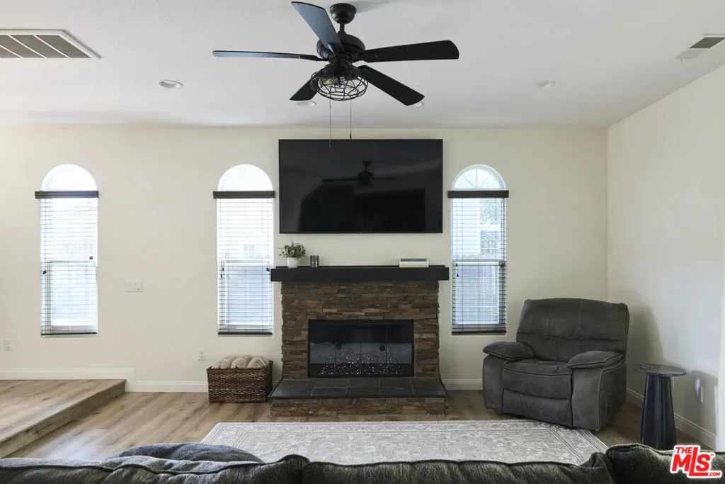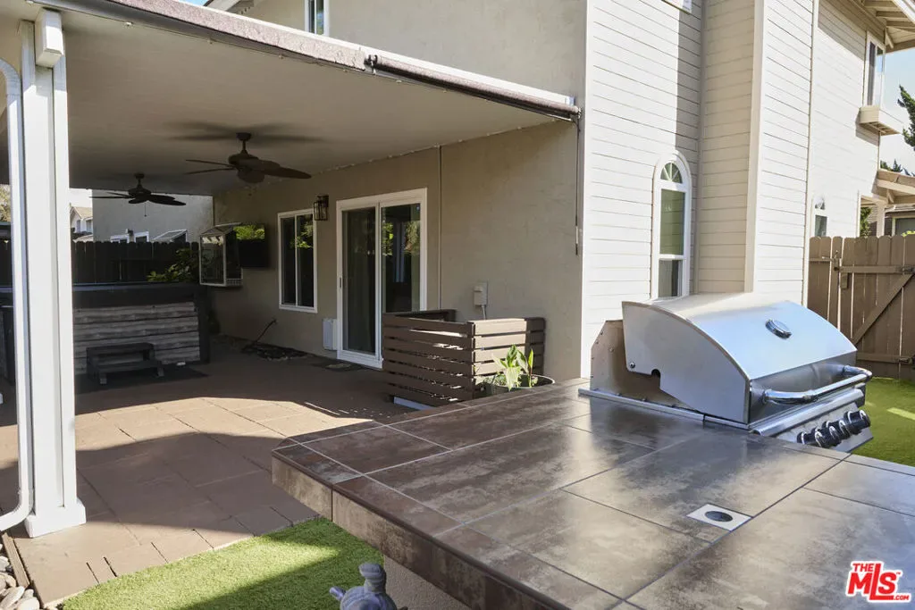 Welcome to 13230 Creekside Lane, an updated two-story home nestled in the heart of Poway. This thoughtfully improved residence offers contemporary finishes, functional living spaces, and a seamless connection between indoor and outdoor areas. The open living room showcases wide plank flooring, generous ceiling height, recessed lighting, and a stone fireplace that serves as a stylish focal point. Sliding glass doors open to the backyard, bringing in natural light and allowing an easy transition to outdoor living. The kitchen features granite countertops, stainless steel appliances, and a breakfast bar that flows into the dining area tailored for daily living and hosting guests. Upstairs, the primary suite offers a comfortable retreat and remodeled bathroom including dual sinks, modern vanity, and a large walk-in glass shower with designer tile. Additional bedrooms provide flexibility for family, guests, or home office. The backyard is designed for both entertaining and everyday enjoyment. A covered patio with ceiling fans provides ample shade, while the built-in BBQ station creates the perfect setting for outdoor dining. Low-maintenance landscaping, including artificial turf, enhances usability, and the spa area offers a relaxing place to unwind. Ideally situated, this home is close to parks, shopping, dining, and the top ranking Poway Unified School District, presenting a great opportunity to own a move-in-ready home in a highly desirable community.