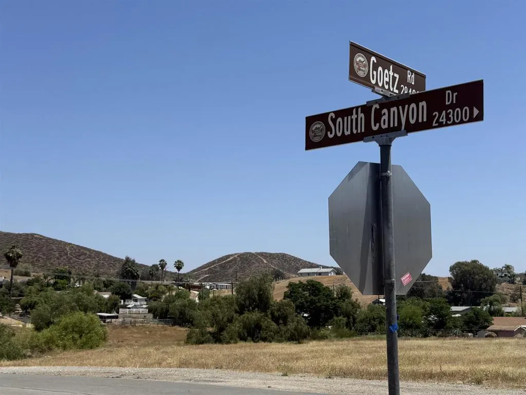 Zoned Commercial and perfectly positioned on the corner of Goetz Rd & S Canyon Dr, this flat and fully usable 1.14-acre parcel offers exceptional visibility in a rapidly developing area of Menifee. Utilities are available at the street, with a sewer connection expected soon. Just minutes from major freeways, Lake Elsinore, Canyon Lake, and a variety of recreational activities—including water sports, hiking trails, a nearby country club, restaurants, and shopping—this location blends accessibility with lifestyle appeal. Ideal for a range of businesses such as a bakery, outdoor vendor plaza, equipment sales, or a neighborhood grocery store, this lot is a fantastic opportunity for both owner-users and investors. Bonus: The seller is open to a potential trade involving a residential property—perfect for those looking to exchange into a strategically located commercial site. Buyers to verify all zoning and permitted uses with the City of Menifee.