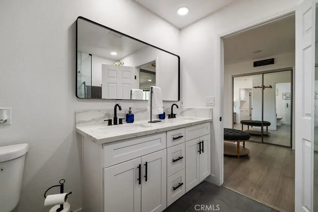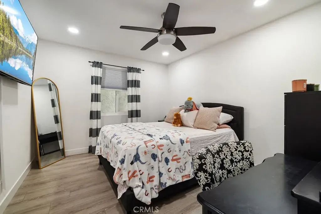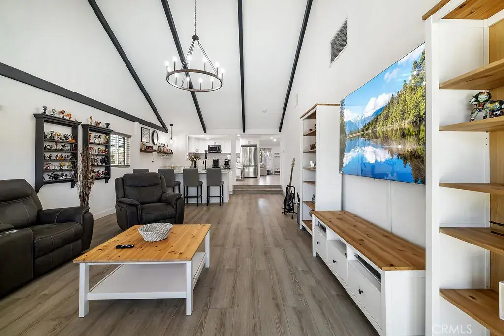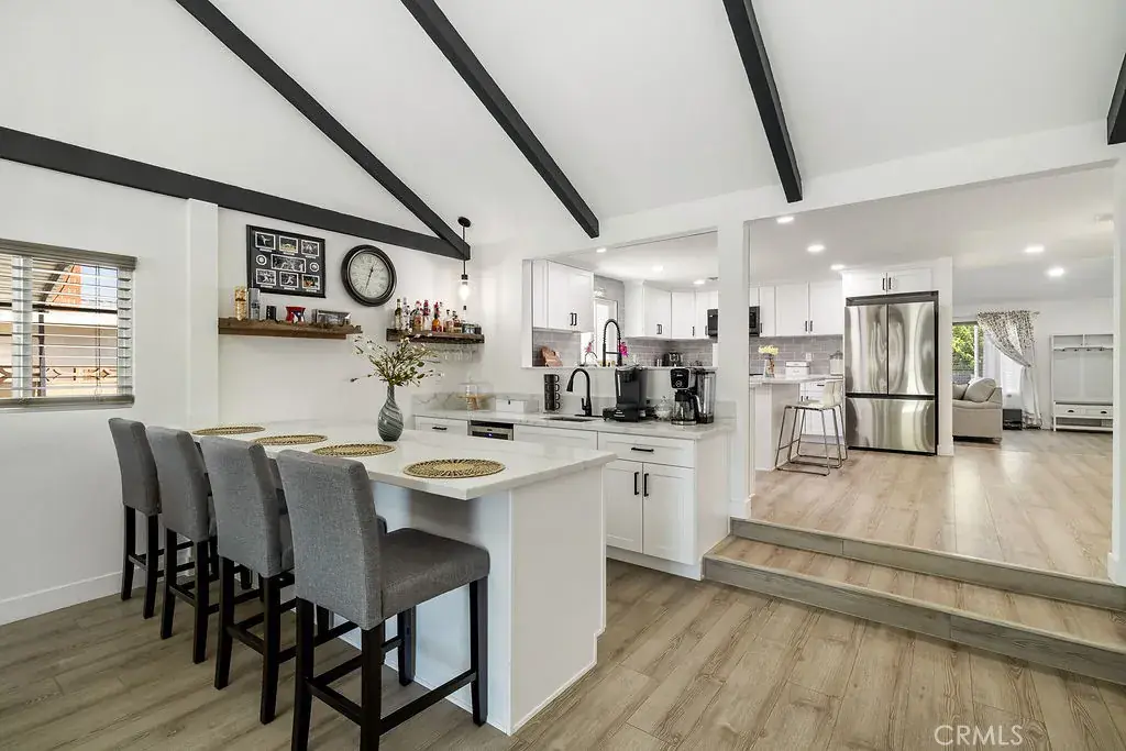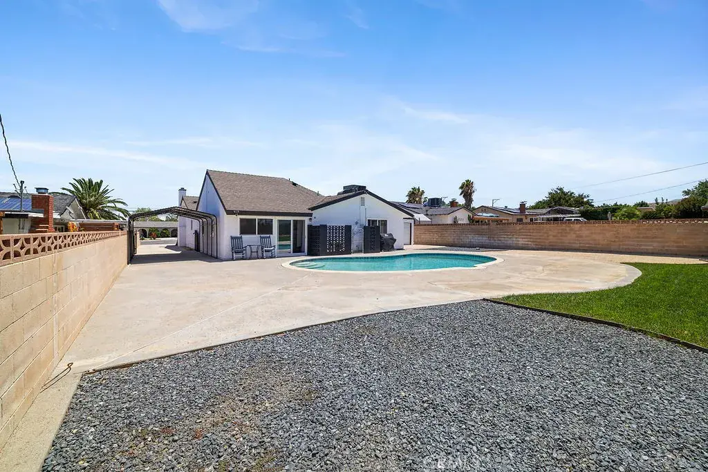 Brand New Roof! Gorgeous, newly remodeled 5 room, 2 bath, single story, pool house. Farmhouse inspired. Amazing 2,430 sq foot living space that welcomes you with an open-concept floor plan. You can see your backyard pool upon entering the front door. The entire house flows effortlessly. Formal living room with fireplace. Modern kitchen featuring quartz counter tops, a chic tile backsplash, a center island and stainless-steel appliances. Microwave, dishwasher, refrigerator and stove are included with the sale! A second island is found in the wet bar that is connected to the second living room creating the perfect setting for entertaining! Sit down and enjoy a glass of wine or a cup of coffee watching the sunset or the sparkling pool. Everything in this sleek home is 2 yrs old, floors, fans, chandeliers, doors, windows, blinds, garage door, pool equipment and heater, you name it! Independent laundry room equipped with cabinets and a utility sink. Electric washer & dryer also included. A custom-built shower glass door was made for the master bedroom along with dual sink quartz counter tops. Property includes a back shed/storage room, RV access, private parking and exterior lighting throughout. Welcome to your new home!