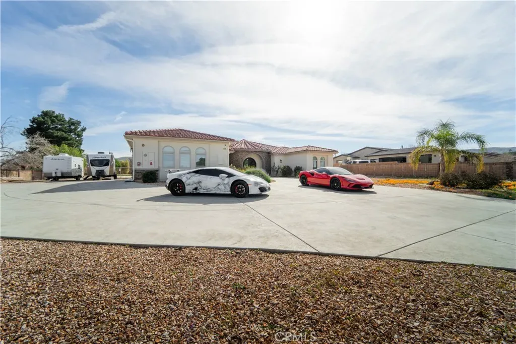 LUXURY LIVING IN QUARTZ HILL ON AN ACRE LOT! This extraordinary custom estate, built in 2020, welcomes you through a private entry with an automatic gate, setting the tone for the luxury that awaits beyond. Situated on a sprawling one-acre lot, this home was thoughtfully designed for both elegance and functionality. Grand front doors open to an exceptional layout with tons of natural lighting featuring tall ceilings, a formal dining area, and a spacious living room anchored by a stunning stone fireplace and custom shelving. The gourmet kitchen is truly a showstopper with high-end stainless-steel appliances, double ovens, an oversized walk-in pantry, and seamless flow into the main living space perfect for entertaining. All four generously sized bedrooms include their own attached bathrooms, offering ultimate comfort and privacy with planation shutters giving each room a modern and clean style. The primary suite is a retreat of its own with two walk-in closets, a large custom walk-in shower, a relaxing garden tub, and private access to the backyard. The oversized three car garage provides ample storage space along with extensive RV access for all your toys and equipment. Step outside to your private entertainer’s paradise featuring a built-in pool and spa, covered patio, custom bar, and a basketball court. With room to build a future shop or guest home, the possibilities are endless. Solar panels help keep electric bills low. This home has it all. Call for your personal tour today!
