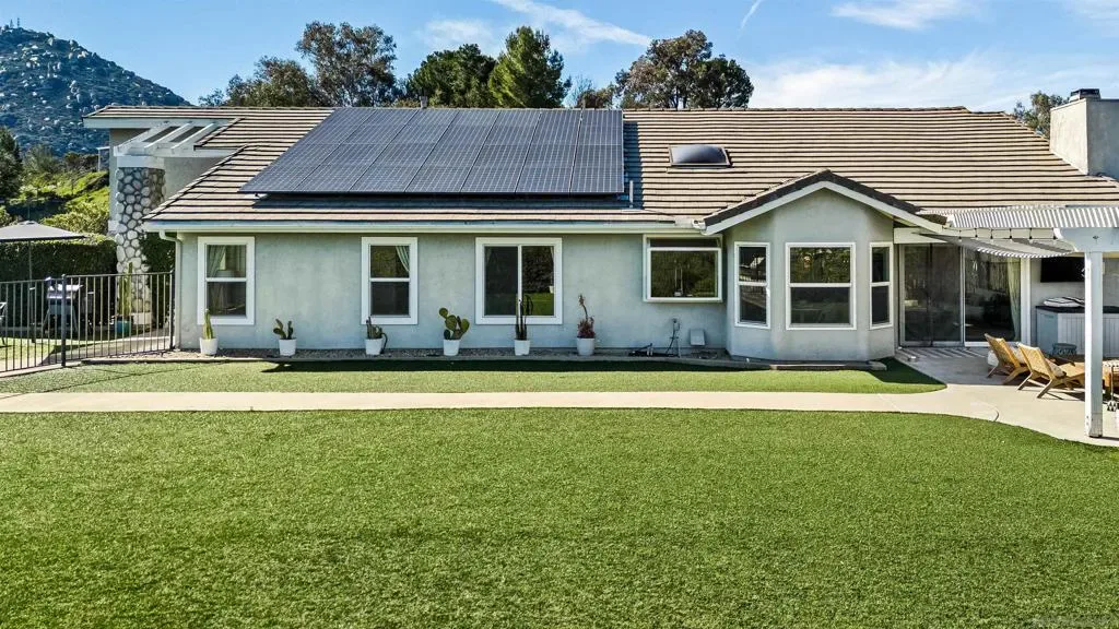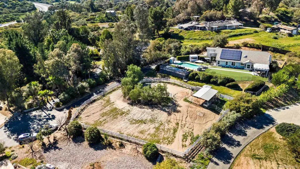 Presenting this spacious single level home nestled within the desirable Shady Oaks gated community. This stylish 3 bedroom, 2 bathroom residence is set on a serene, useable one acre lot, offering privacy and tranquility while enjoying the convenience of being in the west end of Ramona. Designed with comfort and functionality in mind, the home features an open- concept floor plan with vaulted ceilings, a formal dining area, charming breakfast nook off the kitchen, spacious bedrooms and a beautifully re-tiled fireplace that anchors the main living space. The outdoor living area invites indoor-outdoor entertaining, where panoramic mountain view’s can be enjoyed from the pool deck beside a sparkling pool and outdoor bar. The shaded patio beneath the pergola offers yet another inviting space to relax and unwind. Equestrian enthusiasts will appreciate the designated horse space, complete with redesigned fencing and pipe corrals on the lower portion of the lot. Additional highlights include solar panels for energy efficiency, whole house filtration system, newly installed flooring, HVAC, and water heater along with an attached three-car garage, ample parking with an extended driveway. Irrigation installed all throughout property including by the plant garden, fruit trees and horse area. Only several miles from Poway with popular hiking, horse trails and wineries are all close by. Presenting this spacious single level home nestled within the desirable Shady Oaks gated community. This stylish 3 bedroom, 2 bath residence is set on a serene, useable one acre lot, offering privacy and tranquility while enjoying the convenience of being in the west end of Ramona. Designed with comfort and functionality in mind, the home features an open- concept floor plan with vaulted ceilings, a formal dining area, charming breakfast nook off the kitchen, spacious bedrooms and a beautifully re-tiled fireplace that anchors the main living space. The outdoor living area invites indoor-outdoor entertaining, where panoramic mountain view’s can be enjoyed from the pool deck beside a sparkling pool and outdoor bar. The shaded patio beneath the pergola offers yet another inviting space to relax and unwind. Equestrian enthusiasts will appreciate the designated horse space, complete with redesigned fencing and pipe corrals on the lower portion of the lot. Additional highlights include solar panels for energy efficiency, whole house filtration system, newly installed flooring, HVAC, and water heater along with an attached three-car garage, ample parking with an extended driveway. Irrigation installed all throughout property including by the plant garden, fruit trees and horse area. The best hiking, horse trails and wineries are all close by.