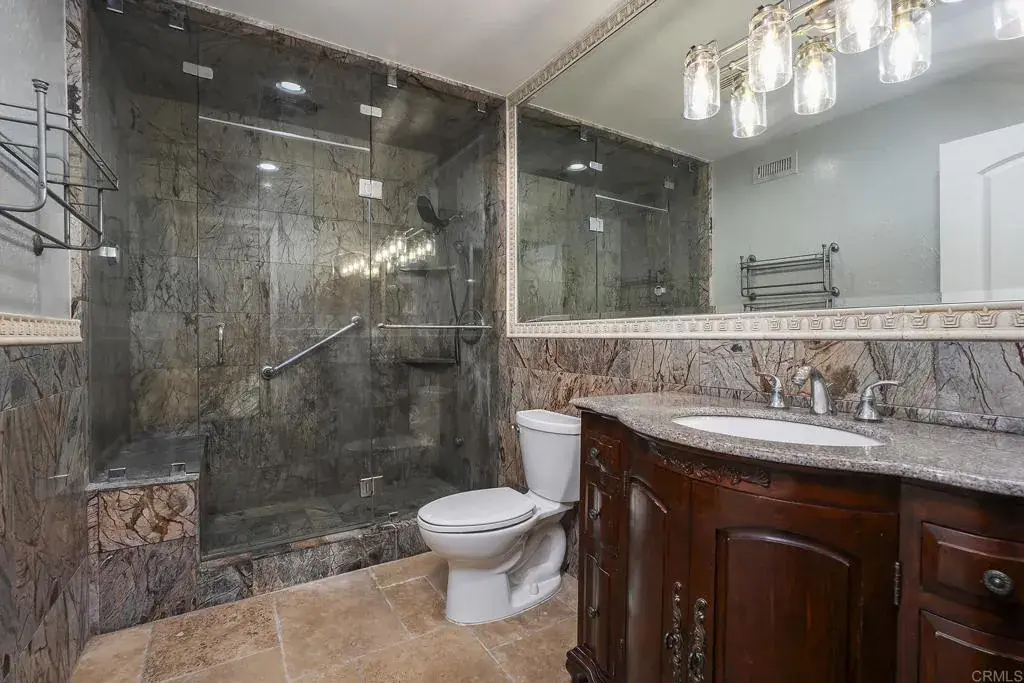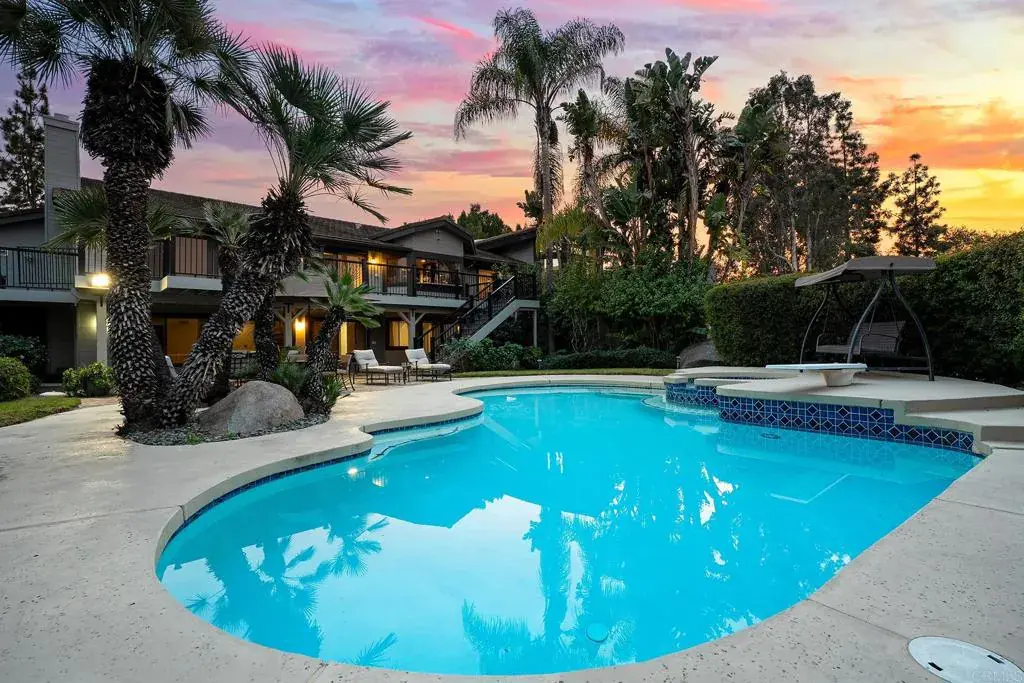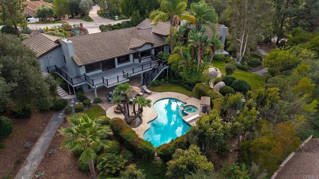 EXCEPTIONAL ESTATE OPPORTUNITY IN RANCHO BERNARDO’S MOST EXCLUSIVE ENCLAVE, THE TRAILS. POSITIONED ON A PREMIER 1.16-ACRE PRIVATE CORNER LOT, THIS EXPANSIVE RESIDENCE OFFERS REMARKABLE PRIVACY, PANORAMIC VIEWS, AND THE FOUNDATION FOR TRUE RESORT-STYLE LIVING. SPANNING 5,467 SQUARE FEET, THE HOME FEATURES 6 BEDROOMS AND 3.5 BATHROOMS WITH A LAYOUT DESIGNED FOR GRAND-SCALE ENTERTAINING AND EVERYDAY ELEGANCE. SOARING 20FT WOOD BEAM CEILINGS, MULTIPLE FORMAL AND CASUAL LIVING SPACES, AND WALLS OF WINDOWS CREATE AN ABUNDANCE OF NATURAL LIGHT WHILE FRAMING THE STUNNING SURROUNDINGS AND SEAMLESS INDOOR-OUTDOOR FLOW. FOUR FIREPLACES THROUGHOUT THE HOME ADD WARMTH, CHARACTER, AND ARCHITECTURAL INTEREST. THE ENTERTAINER’S KITCHEN ANCHORS THE HOME WITH GRANITE COUNTERTOPS, A CENTER ISLAND, WALK-IN PANTRY, AND GENEROUS COUNTERTOP SEATING, OPENING TO THE FAMILY ROOM AND AN EXPANSIVE APPROXIMATELY 1,000 SQUARE FEET OF TREX DECKING IDEAL FOR HOSTING OR UNWINDING WHILE TAKING IN THE BREATHTAKING VIEWS. A WET BAR IN THE FAMILY ROOM FURTHER ENHANCES THE HOME’S ENTERTAINMENT APPEAL. THE SPACIOUS PRIMARY SUITE IS A PRIVATE SANCTUARY, OFFERING TWO PRIVATE TERRACES, A SEPARATE DRESSING AREA, AND AN OVERSIZED CEDAR-LINED WALK-IN CLOSET, CREATING A TRUE RETREAT WITHIN THE HOME. THE LOWER LEVEL PROVIDES ADDITIONAL FLEXIBLE LIVING SPACE WITH A BONUS ROOM WITH THE OPTION TO BE AN ADDITIONAL BEDROOM, ALONG WITH A BEDROOM FEATURING A WALK-IN CLOSET AND A FULL BATHROOM. THIS LEVEL OFFERS BOTH INTERIOR AND EXTERIOR ACCESS, MAKING IT IDEAL FOR GUESTS, OR FUTURE CUSTOMIZATION. THE FULLY FENCED BACKYARD IS A TRUE HIGHLIGHT, FEATURING A PARK-LIKE YARD WITH LUSH LANDSCAPING, MAJESTIC MATURE TREES, A SPECTACULAR DIVING POOL, LUXURIOUS SPA, AND A LARGE FIREPIT—CREATING AN EXCEPTIONAL SETTING FOR BOTH RELAXATION AND ELEVATED ENTERTAINING. THE PROPERTY OFFERS POTENTIAL FOR MANY OPTIONS, IN ADDITION TO THE EXISTING DOWNSTAIRS LOWER-LEVEL LIVING AREA, PROVIDING LONG-TERM FLEXIBILITY AND VALUE. ADDITIONAL FEATURES INCLUDE A 3-CAR ATTACHED GARAGE WITH DIRECT ACCESS, AN ELEGANT CIRCULAR DRIVEWAY OFFERING ABUNDANT ADDITIONAL PARKING, INDOOR LAUNDRY, AND A COMPREHENSIVE SECURITY SYSTEM FOR PEACE OF MIND. THIS IS A RARE OPPORTUNITY TO CREATE A CUSTOM ESTATE IN ONE OF RANCHO BERNARDO’S MOST COVETED NEIGHBORHOODS—WHERE SCALE, PRIVACY, VIEWS, AND TIMELESS POTENTIAL CONVERGE.