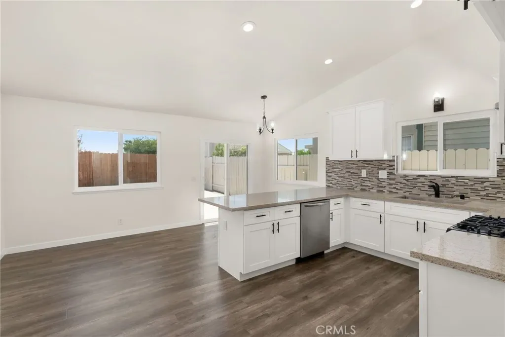 Renovated in 2020 and meticulously maintained, this move-in ready home offers a thoughtfully designed layout with distinct living and dining spaces, enhanced by soaring vaulted ceilings that create an airy, light-filled ambiance throughout. The inviting kitchen blends functionality with modern design, featuring quartz countertops, bright cabinetry, and stainless steel appliances—ideal for both everyday living and effortless entertaining.