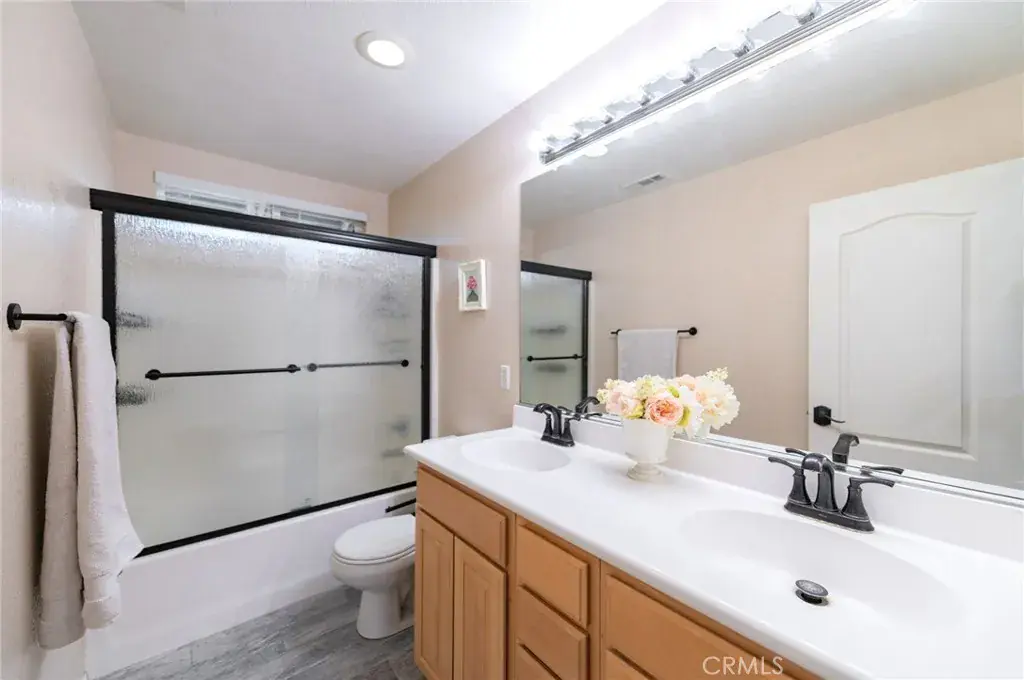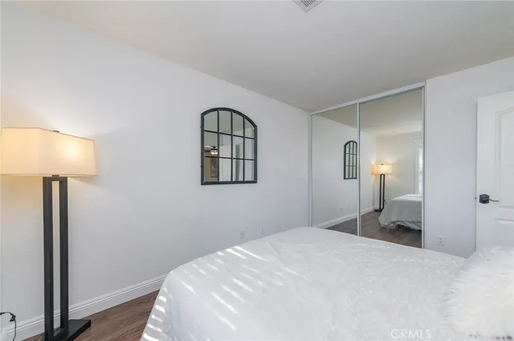 Contemporary laminate flooring flows throughout the entire home. All bathrooms feature updated porcelain tile and modern light fixtures. The kitchen is appointed with quartz countertops, under-counter and countertop lighting, updated modern fixtures, an oversized pantry, and ample cabinetry.