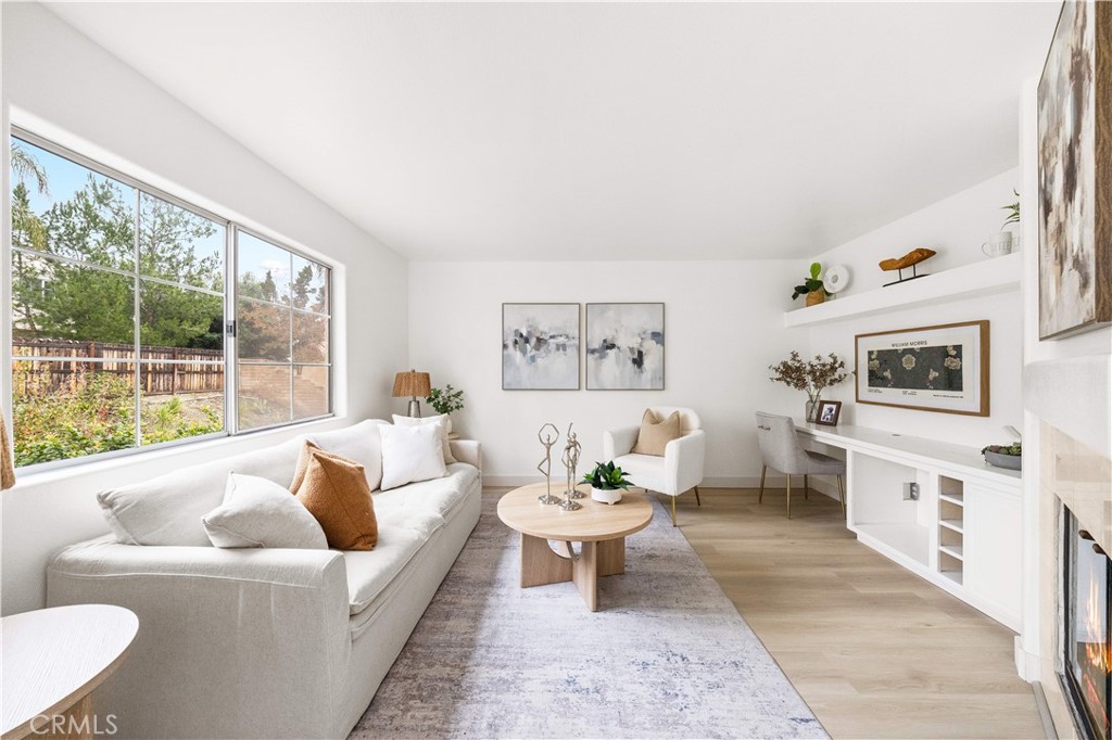 The primary suite is generously sized and includes an adjoining retreat area, complete with an angled fireplace and built-in desk—a flexible space perfect for a home office, reading lounge, or quiet escape. Originally, the builder offered this retreat as an optional additional bedroom, highlighting the home’s adaptable layout.