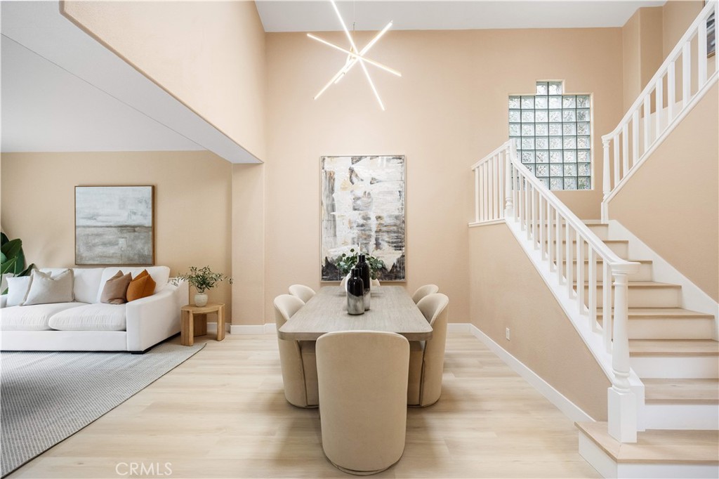 Upon entering through the double-door entry, you’re immediately welcomed by a dramatic soaring ceiling that creates an open, airy first impression. The flow continues into the formal living and sitting areas, where the high ceilings amplify natural light and give the home an exceptional sense of volume and elegance.