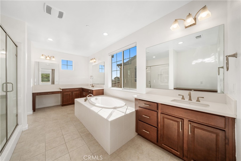 Upstairs, you’ll find plush, textured carpeting and a massive, sun-drenched master suite. The master bathroom features a separate soaking tub and walk-in shower, while the extra-large walk-in closet provides ample storage. Large, bright windows in the suite frame an incredible 180-degree view of the snow-capped mountains.