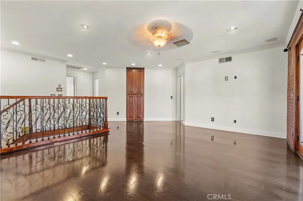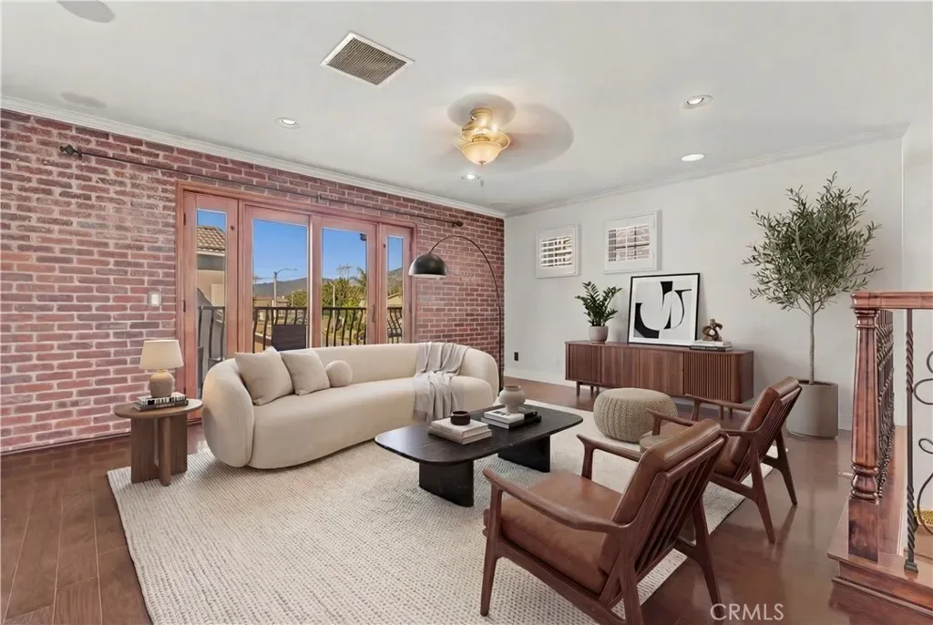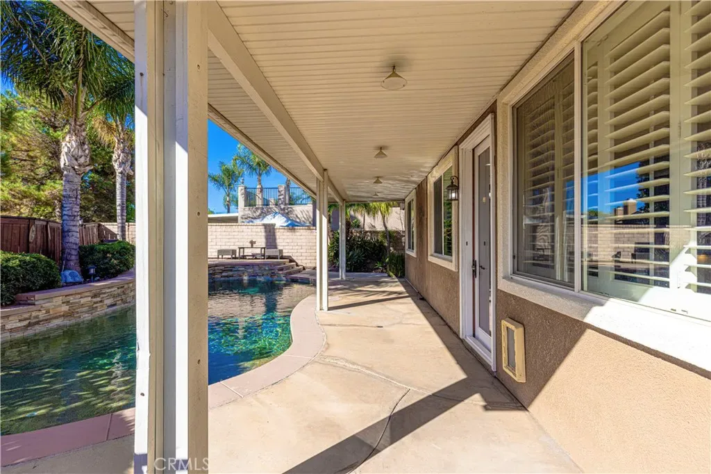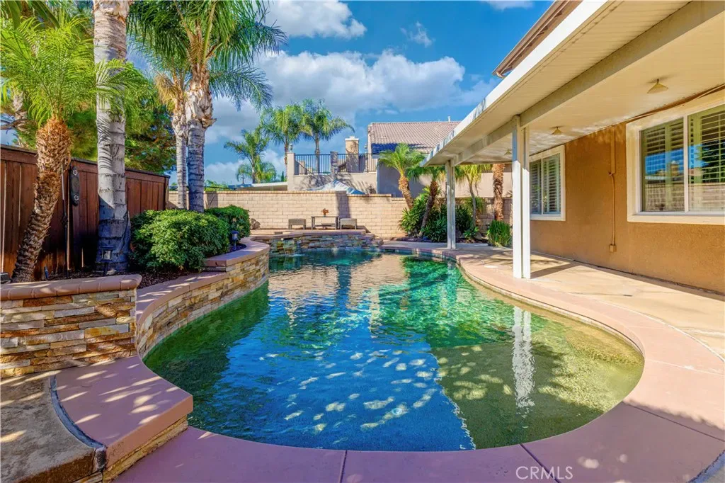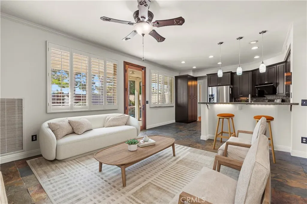 Set in one of Rancho Cucamonga’s most desirable neighborhoods and located within the highly acclaimed Etiwanda School District, this impeccably upgraded residence offers a rare blend of elegance, comfort, and resort-style living. Just moments from the Pacific Electric Trail, the home is ideally suited for those who value both outdoor recreation and refined indoor spaces. Upon entry, you are greeted by thoughtfully curated interiors showcasing custom natural slate flooring, detailed baseboards, and classic crown molding throughout. The home’s versatile open layout features multiple living areas, including two spacious family rooms and a formal dining space enhanced with premium SPC vinyl flooring that delivers the rich look of natural wood with modern durability. At the heart of the home is a stunning chef’s kitchen designed for both entertaining and daily enjoyment, complete with quartz countertops, high-end appliances, a FOTILE range hood, and effortless flow to the backyard. The adjacent family room invites relaxation with its stone-accented feature wall and cozy fireplace, creating a warm yet sophisticated atmosphere. Step outside to discover a true private retreat. The expansive backyard is thoughtfully designed for year-round enjoyment, featuring a sparkling pool and spa, covered patio, fully equipped outdoor kitchen, and a tropical-inspired Hawaiian seating area—perfect for hosting gatherings or unwinding in total privacy. The floor plan offers exceptional flexibility, including a private guest bedroom on the main level. Upstairs, a striking wrought-iron staircase leads to a spacious loft, a luxurious primary suite, and two additional well-appointed bedrooms. Additional upgrades include an energy-efficient solar system, custom built-in closets, plantation shutters, integrated outdoor furnishings, and a whole-home sound system. Beautifully maintained and move-in ready, this remarkable home delivers timeless style, modern conveniences, and an unmatched lifestyle experience. Opportunities like this are rare—this is luxury living at its finest.