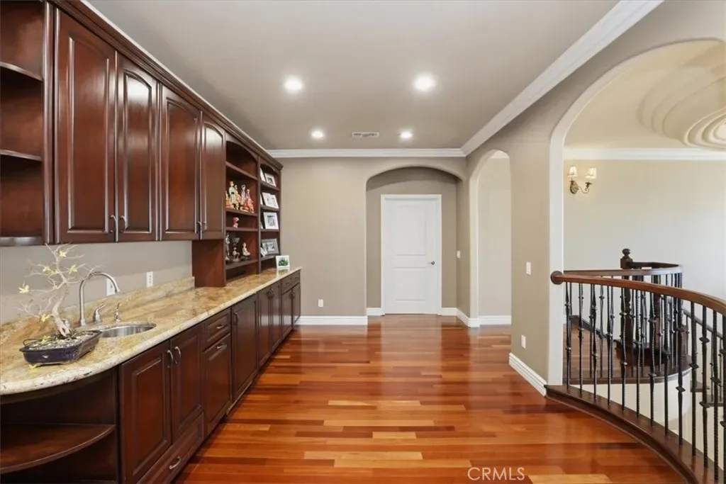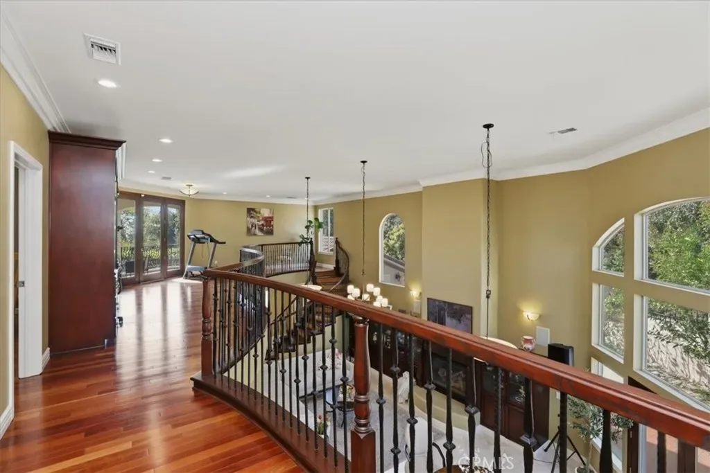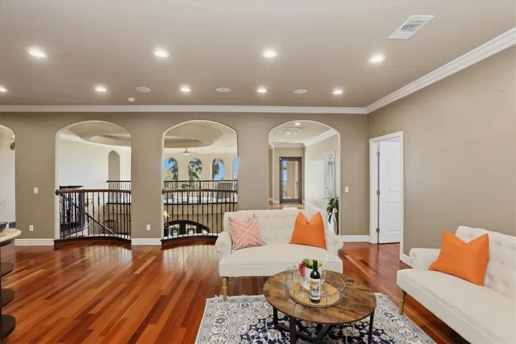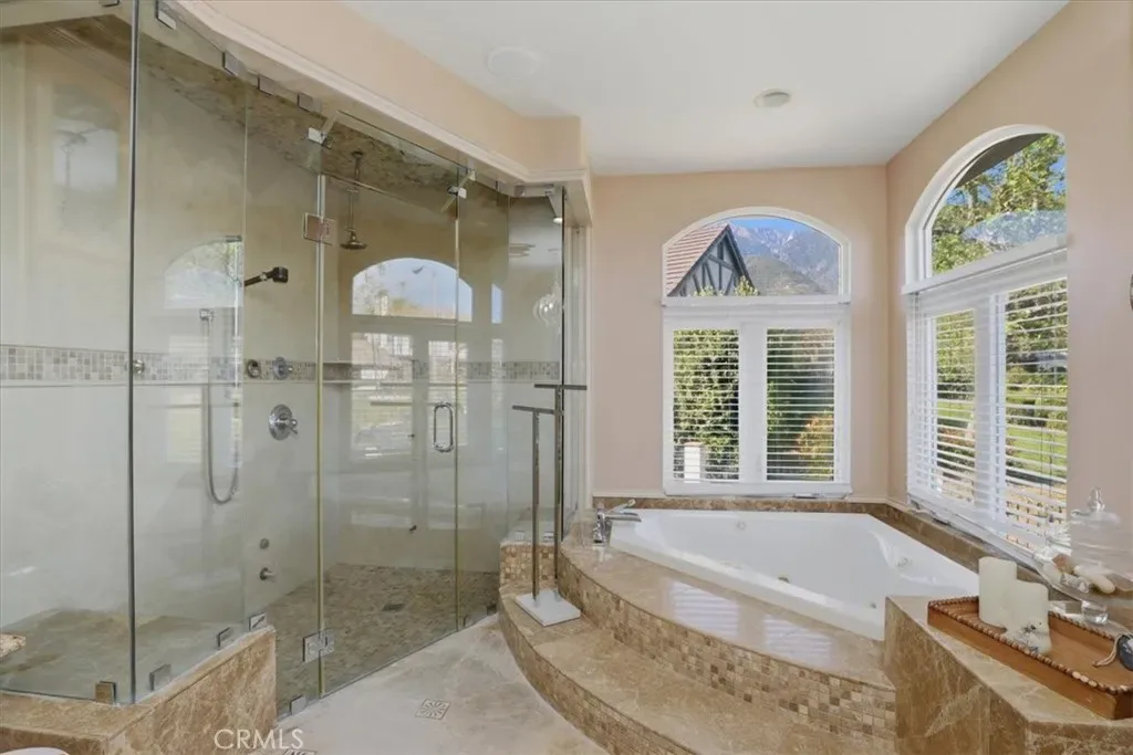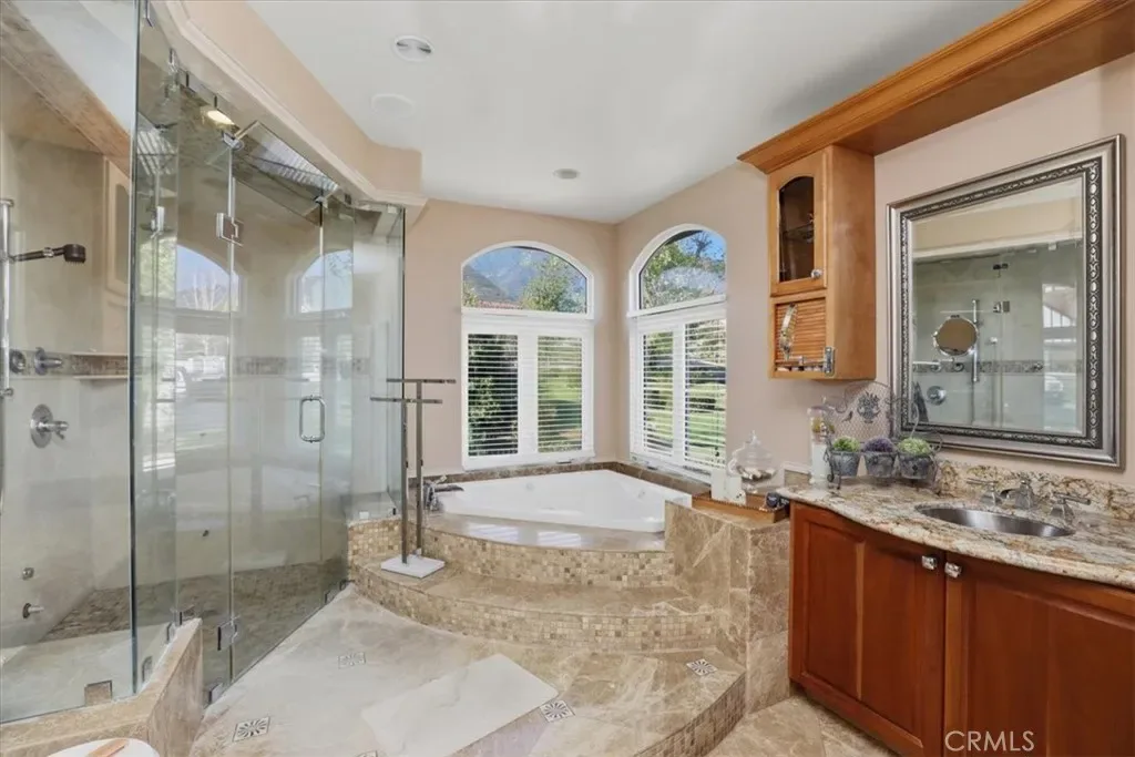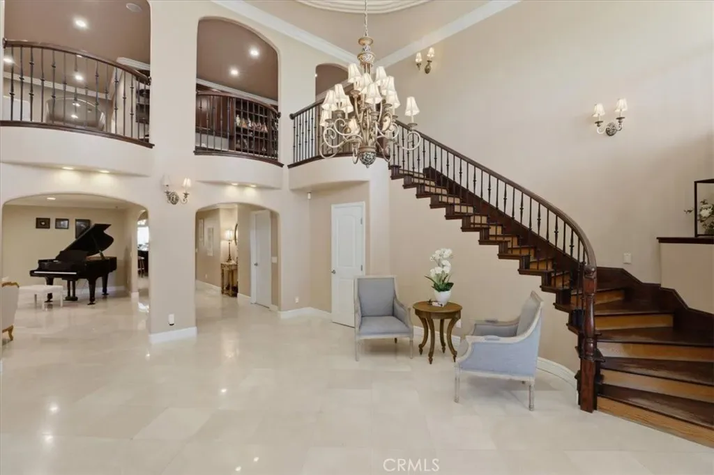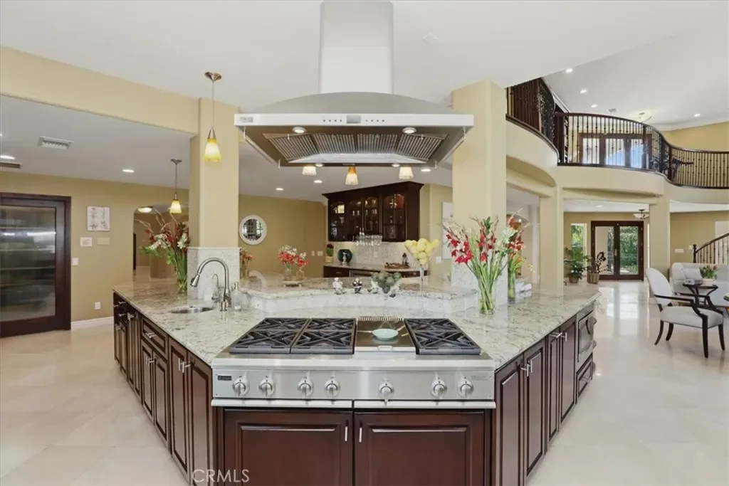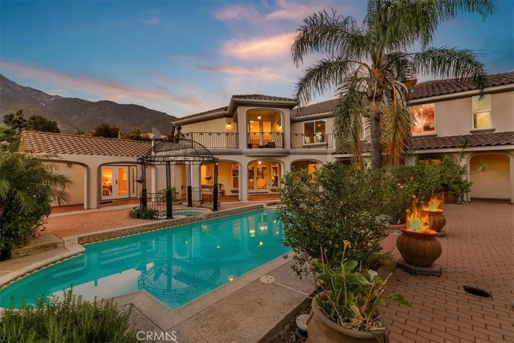 Welcome to Clover Place Manor, a magnificent custom residence set behind the gates of prestigious guard-gated Haven View Estates in Rancho Cucamonga. Situated on an expansive half-acre lot, this 7-bedroom, 7-bath estate offers approximately 8,500 square feet of refined living with an ideal blend of elegance, comfort, and scale. A private courtyard with a tranquil fountain leads to a grand double-door entry and marble foyer. The open floor plan features formal living and dining spaces, an executive office with custom built-ins, and a dramatic family room with soaring ceilings and abundant natural light. The chef’s kitchen is a true showpiece—appointed with GE Monogram appliances, including a built-in refrigerator, double ovens, and a six-burner cook top, complemented by a butler’s pantry, expansive granite countertops, custom backsplash, and an oversized center island designed for gathering. Intimate alcoves and inviting sitting areas throughout create the perfect setting for entertaining or relaxing while enjoying the surrounding views. A main-level guest suite with private entrance offers ideal accommodations for guests or multi-generational living. Upstairs, a spacious loft and thoughtfully designed living spaces continue the home’s theme of comfort and versatility. The primary suite is a private sanctuary, generous in scale with a sitting area and dual-sided fireplace, opening to a private balcony with breathtaking city lights views. The spa-inspired bath features dual vanities, custom cabinetry, a large steam shower, and a jetted soaking tub, complemented by an expansive walk-in closet. Thoughtful upgrades include crown molding, custom cabinetry, and refined architectural details throughout. The resort-style backyard features a pool, spa, outdoor kitchen, and multiple gathering areas designed for the ultimate California lifestyle. Clover Place Manor is a rare opportunity to own a statement residence in one of Rancho Cucamonga’s most exclusive gated communities.