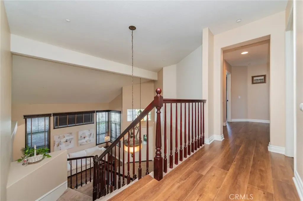 Beautifully maintained home located in the highly desirable Alta Loma area of Rancho Cucamonga, situated on a quiet cul-de-sac with excellent curb appeal and mountain views. The interior is bright and airy, featuring a high-ceiling living room that creates an open and spacious feel. Offering approximately 2,238 sqft of living space, built in 1992, this home features 4 bedrooms and 3 bathrooms, along with both a family room and living room. Pride of ownership is evident throughout, with exceptional care and maintenance. The property includes a spacious 3-car garage with ample parking and storage, a covered patio, remodeled fireplace, and formal dining area. All bedrooms are located upstairs, including a primary suite with a large bathroom and walk-in closet. The staircase showcases a beautiful wood banister. Exterior paint was completed in 2024 and interior in 2020. The entry features tile flooring, and newer laminate flooring was installed in 2022. The kitchen has been refinished with updated cabinetry and quartz countertops, and includes a refrigerator, gas stove/oven, dishwasher, and microwave, along with a walk-in pantry. Upgrades include a brand-new electrical panel, EV charger-ready setup, new smart irrigation system, new water heater, and vertical blinds. The children’s room features custom wainscoting and designer wallpaper. The front and backyard landscaping have been meticulously maintained. Laundry room is conveniently located downstairs, and the backyard offers a private and peaceful setting. This home is truly move-in ready. Near the I-15 & 210 freeway for easy commuting, and close to Trader Joe’s, Terra Vista Town Center, Victoria Gardens, Ontario Mills, and 99 Ranch Market, with walking distance to schools, offering excellent convenience for shopping, dining, and daily living.