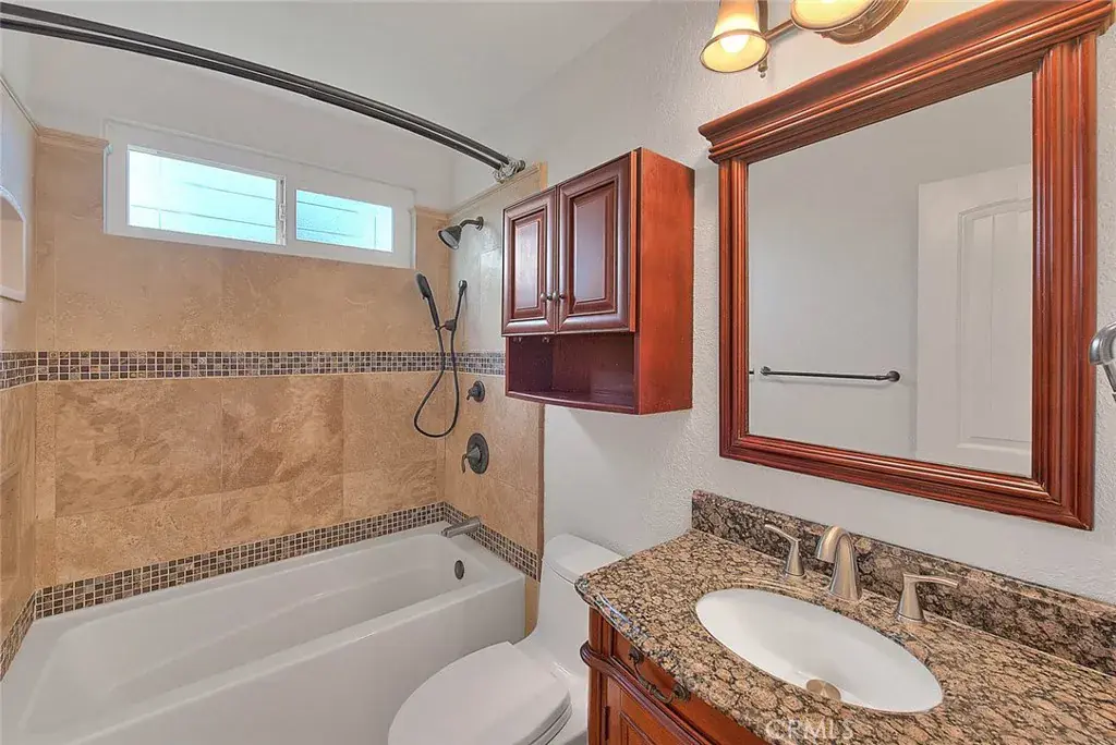 Move-in ready SINGLE story Rancho Cucamonga home located in a desirable neighborhood with beautiful mountain views from the front yard. Featuring 3 bedrooms and 2 full bathrooms this residence has been tastefully upgraded. Freshly painted exterior shows sharp! Double door entry leads to a nicely sized living room with engineered wood flooring. The interior walls have all been repainted using a soft neutral color that will blend with any decor. The kitchen has been remodeled with updated cabinetry, granite counters, tile flooring, recessed lighting and extra overhead cabinets in the dining space of the kitchen. A cozy fireplace creates an inviting ambiance while enjoying meals together. Upgraded sliding doors lead from the kitchen/dining to a covered patio in the backyard. Done in low maintenance Aluma-Wood for long lasting protection from the sun and providing a wonderful spot to entertain and dine outside. The hallway also offers additional storage/linen storage with upgraded wood cabinets. Both bathrooms have been remodeled and include tile flooring, updated vanities, mirrors and fixtures and shower/tub combinations with custom tile work. Each bedroom has ceiling fans and the 2 guest bedrooms have mirrored closet doors. The primary bedroom has a walk in closet and is nicely sized. Pool sized backyard has expansive level lawn area that has so many options including gardening, room for play equipment or sports practice, swimming pool, spa, outdoor firepit or other hardscape enhancements. Noteworthy upgrades that this home offers are a new roof that was done in 2022, new HVAC done in 2022, new garage door and opener installed in 2022, new water heater in 2022, upgraded dual pane windows and sliding doors, plus plumbing was re-piped in 2024. This home is conveniently located to nearby shopping and dining options plus just a quick drive to Victoria Gardens: Rancho Cucamonga’s festive outdoor mall with it’s many delicious eateries, numerous shopping options, entertainment opportunities including the Lewis Playhouse and a movie theater. Truly a great home waiting to be enjoyed by it’s next owner!