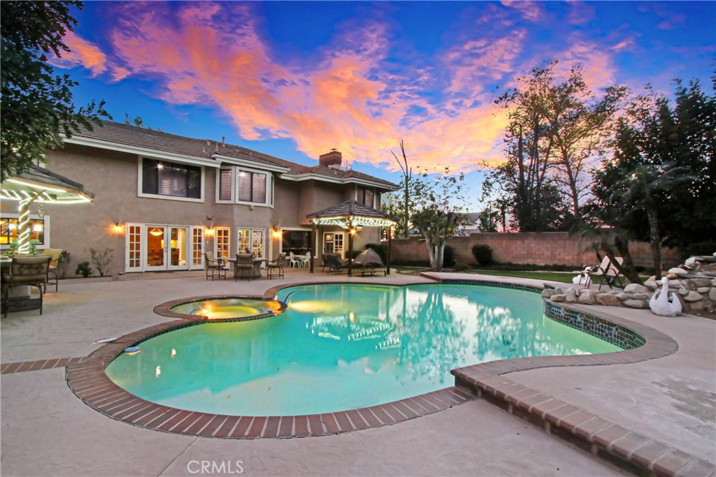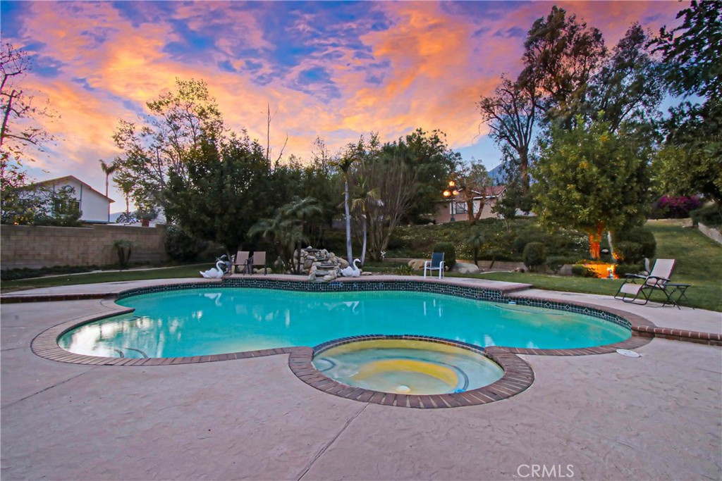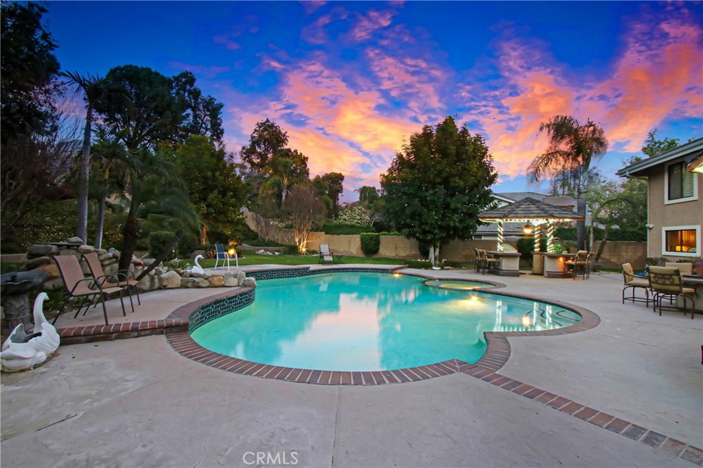 Step outside to your own private resort-style backyard—perfect for entertaining and enjoying Southern California living at its finest. The grounds feature a sparkling in-ground pool and spa with updated equipment (2021) and a new pool filter (2025), a custom outdoor BBQ island, and a palapa that creates a true vacation-style atmosphere. The property also includes a detached storage workshop/shed, ideal for hobbies, storage, or workspace needs, currently being used for Christmas Light storage. Mature fruit trees and lush landscaping enhance the beauty and functionality of this expansive lot.
