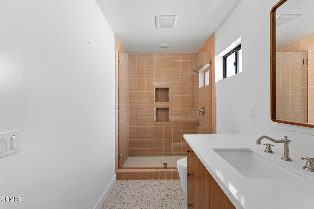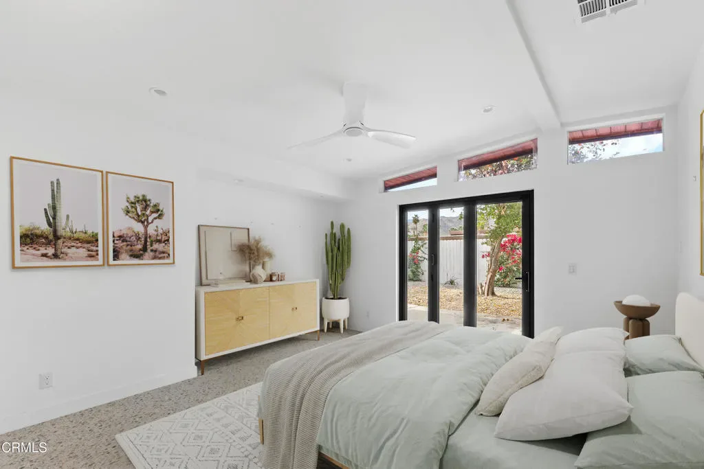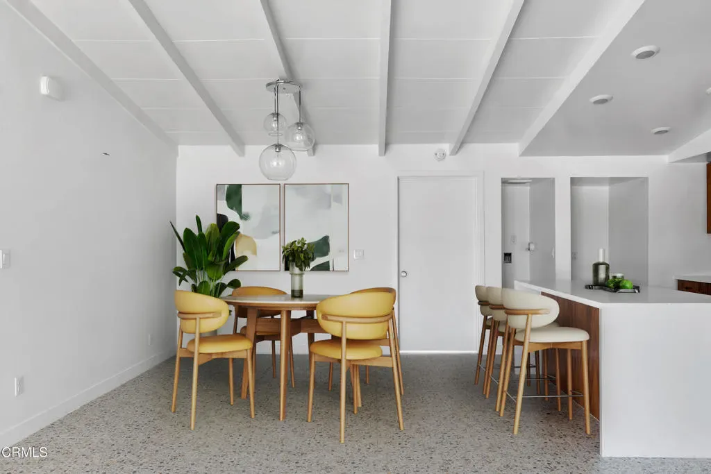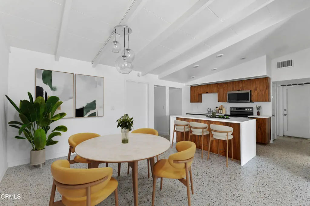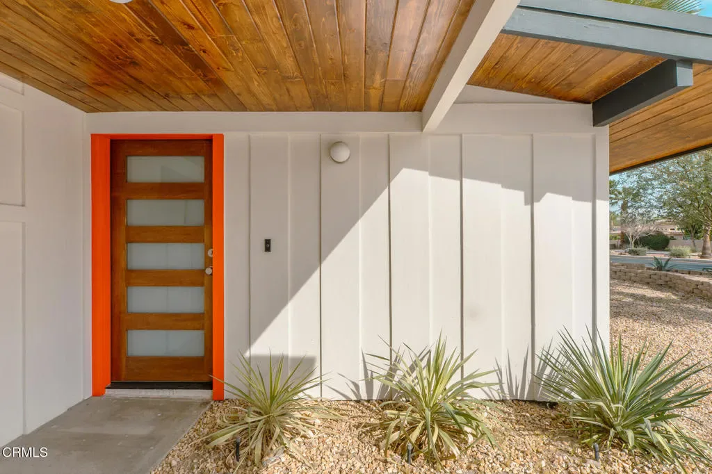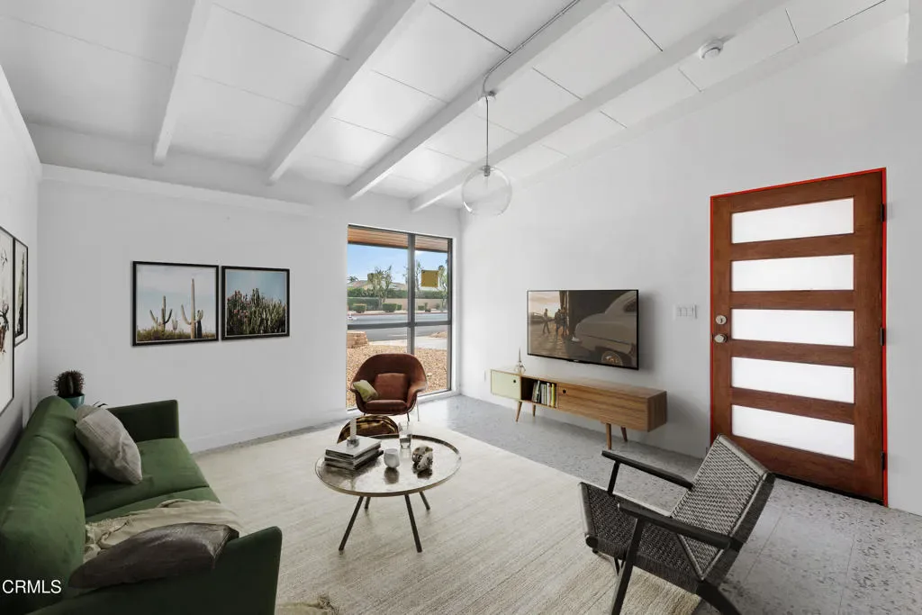 Set within the architecturally significant Tierra Del Sol community in Rancho Mirage, this 1958 Mid-Century Modern residence embodies the timeless clarity of desert modernism.Designed by Richard Leitch, FAIA and developed by Robert McCulloch, Tierra Del Sol earned national recognition with an AIA award for its master planning — a thoughtfully composed enclave of just 39 homes arranged around shared green space and a central clubhouse. Hidden just off Bob Hope Drive, it remains one of Rancho Mirage’s quiet architectural treasures.This home has been carefully renovated to preserve its design integrity while elevating livability for today’s lifestyle. Inside, terrazzo-style flooring flows throughout the open plan, anchoring the interiors with a classic mid-century palette. Clerestory windows bring in soft natural light, while warm wood cabinetry and clean white surfaces reinforce the architectural rhythm of line, light, and material.The flexible layout offers a primary suite, a secondary suite, and a third bedroom, providing privacy for guests or multi-generational living — a rare advantage in historic modernist homes.Outside, the home embraces the desert landscape with citrus trees — grapefruit, tangerine, and orange — creating a private garden that reflects Rancho Mirage’s heritage of resort living. Spectacular mountain views frame the property, while the community’s pool and expansive grounds offer a relaxed social setting reminiscent of classic Palm Springs era living.Located just one mile from The River and moments from Eisenhower Health, the home combines architectural pedigree with everyday convenience.