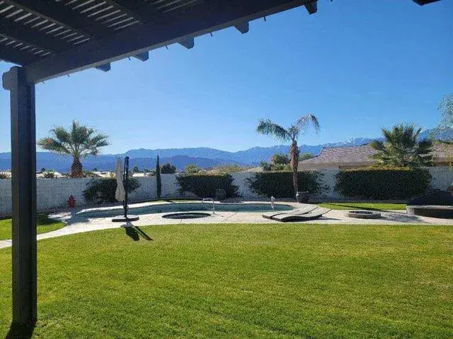 Annual lease. A luxury home on a cul-de-sac in the gated Versailles community – near Eisenhower Medical Center. This 3789 Sq Ft home has 4 bedrooms 3.5 baths and sits on a huge elevated lot with mountain views. Located in the IID lower utility cost district. Beautiful double door glass entry. Spacious open floor plan. The island kitchen has a gas cook top, granite countertops, double ovens, breakfast bar. The primary bedroom suite has a fireplace and a retreat with built-in bookcase. The over-sized back yard has covered patio, fire pit, built-in BBQ and custom saltwater pool & spa. 3-car garage. Basic tv cable, HOA fees, pool + landscape service + trash pick up service are included with annual lease terms. Tenants pay utilities + screening fee. Owner will also consider short term rental terms at $11,000mo with 3 month minimum. Contact agent to schedule your personal showing