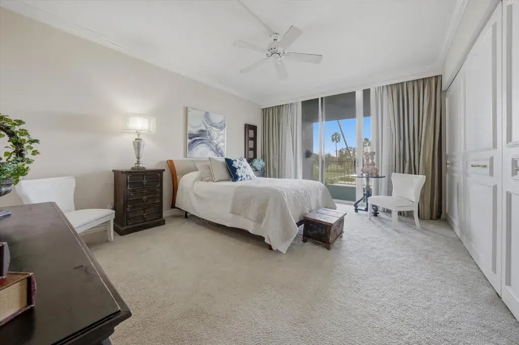 Rare spacious 3-bedroom, 3-bath condo at Desert Island with impressive views of the lake, golf course, and mountains. Features a formal mirrored entry, large living room with custom built-ins, gas fireplace, crown moldings, custom draperies and expansive 9-ft high windows leading to a huge, covered terrace perfect for entertaining or just relaxing. Remodeled kitchen offers oak cabinets, granite counters and stainless-steel appliances. With over 2,600 square feet of interior space, all rooms are generously sized. Altogether this home provides a blend of comfort with extraordinary views and a carefree lifestyle. Desert Island stands as a distinctive high-rise condominium community on a lush, 25-acre private island encircled by a sparkling lake and a lush green 18-hole championship golf course. Residents enjoy beautifully landscaped park-like grounds with walking paths, fruit trees, seating areas, tennis and pickleball courts, heated swimming pools and spas, pedal boats, fishing facilities, and secure 24-hour guard-gated entry. The HOA fees cover on-site management, central air-conditioning, water, gas, trash, Spectrum cable TV, Wi-Fi Internet, and the maintenance of landscaping and common areas, providing a low-maintenance, carefree lifestyle. Conveniently located close to shopping, dining, theaters, galleries, and casinos, with easy access to Eisenhower Medical Center. Schedule your showing today and discover why this home is not just a property, but a place to create lasting memories!