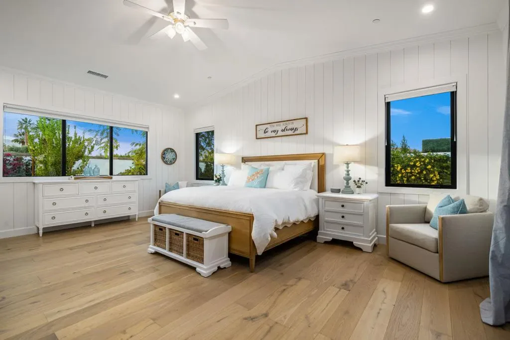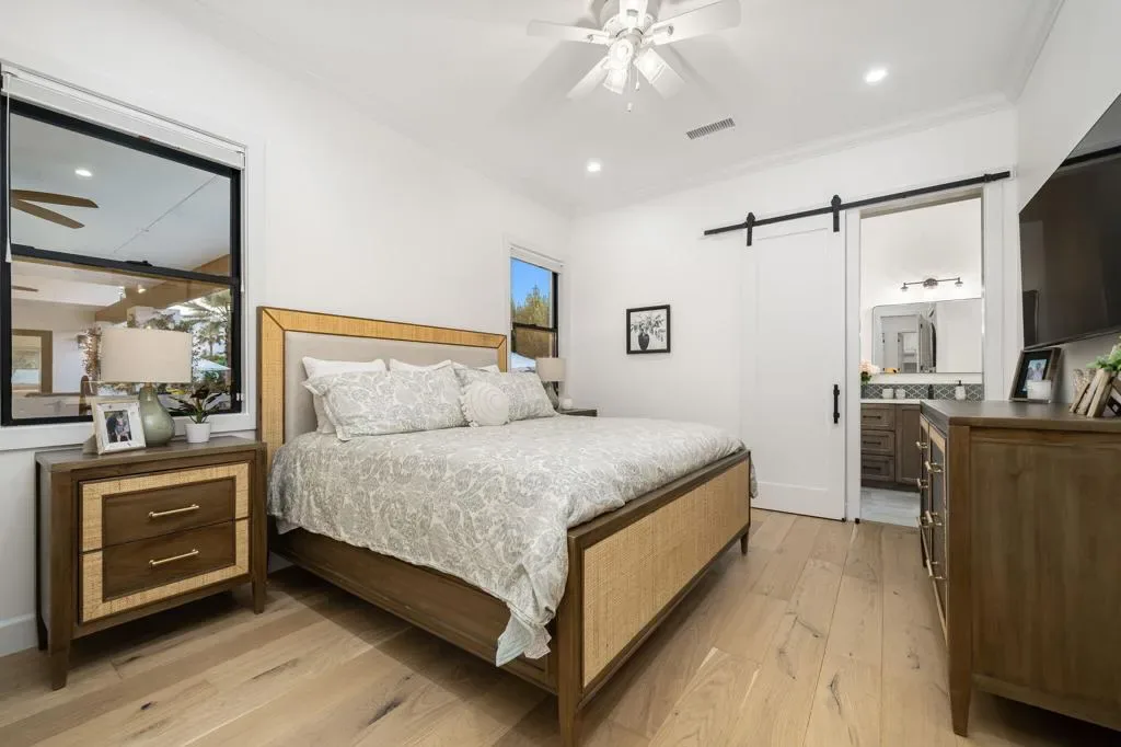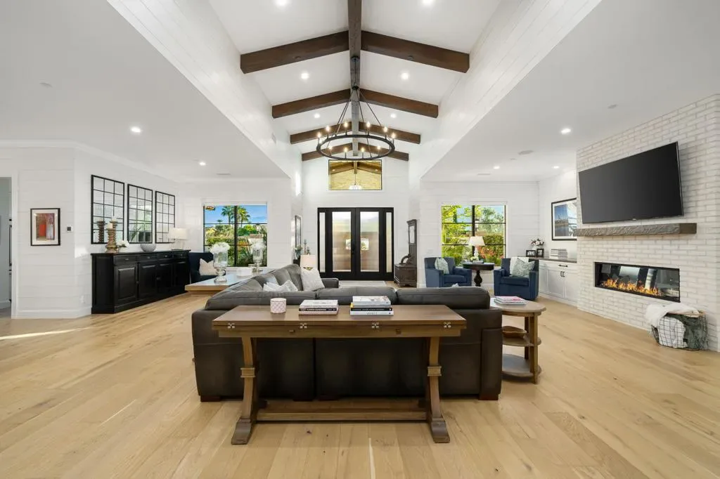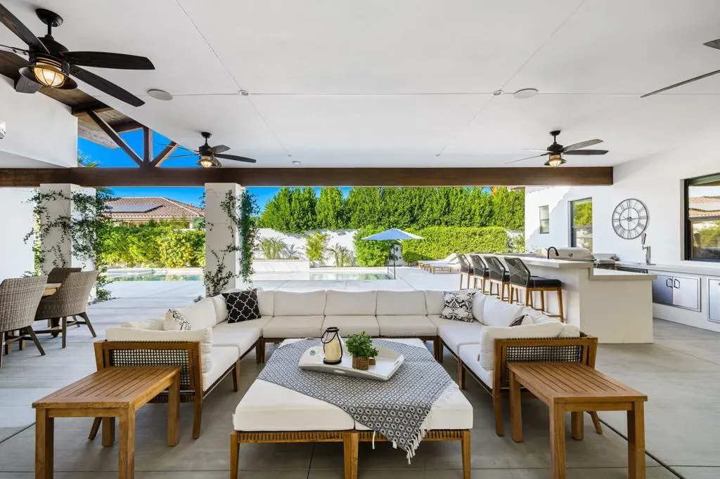 Discover this exceptional Tuscan-inspired enclave nestled within the heart of Rancho Mirage. An elegant combination of dark timber beams, natural stone, and smooth stucco welcomes you into a world of sophistication. Beyond the inner courtyard, enter through reeded glass doors into a grand open-concept design featuring 15-foot cathedral ceilings, modern fireplace, and abundant natural light. Light oak floors, rich wood beams, and white shiplap create a beautifully curated, crisp aesthetic that feels both elegant and cozy. The living room flows seamlessly into the chef’s kitchen, which boasts high-end appliances, a large island with seating for six, a designated dining area, and a fully-equipped butler’s pantry- perfect for entertaining. A highly desirable feature of this 6-bedroom residence is an impressive 4-bedroom attached casita complete with its own full-size kitchen, living room, and laundry. Step out into your private resort! The expansive 1,500 sq ft covered patio is an entertainer’s dream, complete with an outdoor kitchen with BBQ, kegerator, and fridge. True to resort-style living is a modern 44-foot-long pool with waterfalls, lounging areas, and a large fire pit perfect for evening conversations and roasting marshmallows! For ultimate convenience and sustainability, this home is equipped with smart-operated features, key amenities include integrated surround sound, ceiling-mounted Wi-Fi network, Tesla Powerwall system paired with 25 Panasonic solar panels, whole-home soft water filtration, and security cameras throughout.