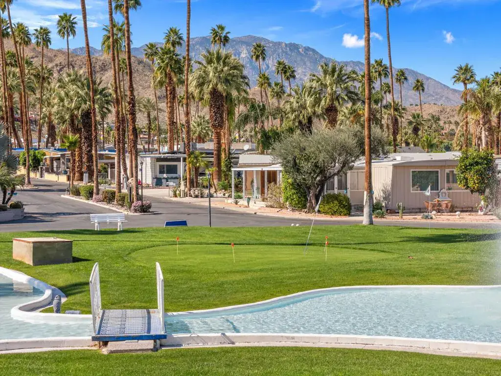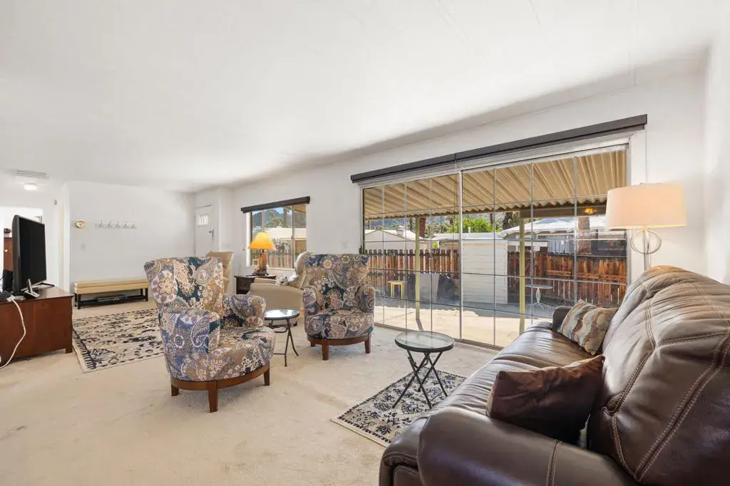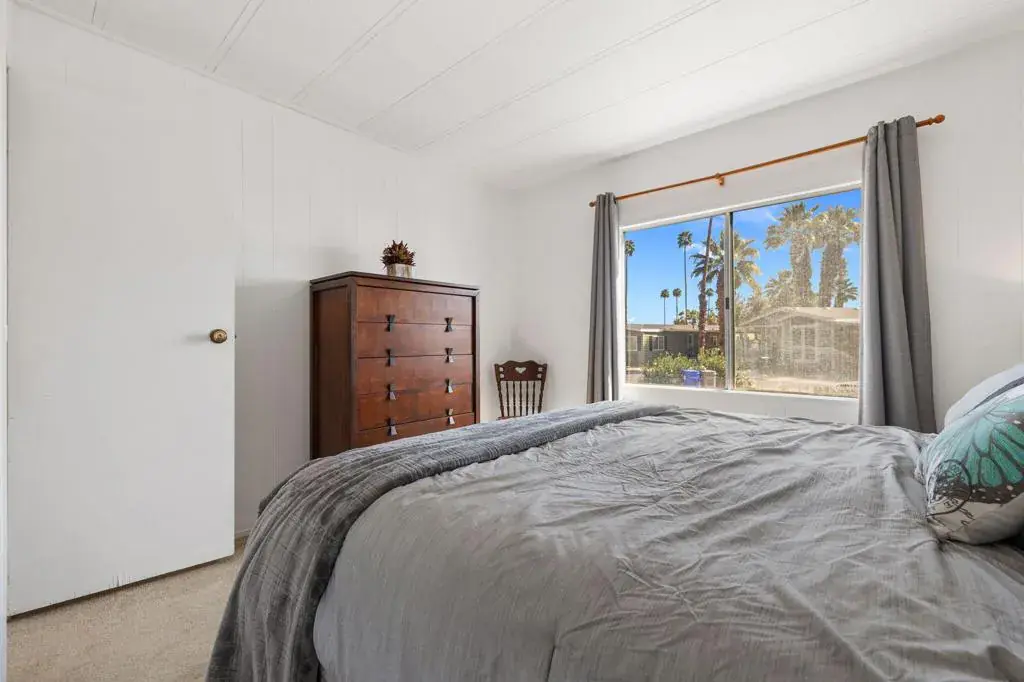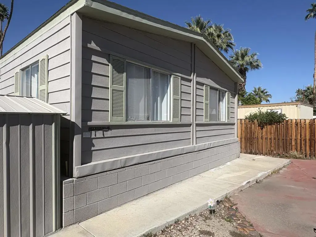 Located on LAND YOU OWN in the iconic Blue Skies Village, this lightly updated 3-bedroom, 2-bath double-wide mobile home offers 1,440 sq. ft. of comfortable desert living in one of Rancho Mirage’s most sought-after senior communities. Ideally situated near the clubhouse and pool, this home combines convenience, lifestyle, and value.The spacious primary suite features a walk-in closet and an en-suite bath with soaking tub and separate fiberglass shower. Two additional bedrooms provide flexibility for guests, office, or hobbies. The home includes newer kitchen appliances, an in-house laundry area with washer and dryer, and a thoughtful floor plan that lives easily year-round.A tandem two-car carport, private storage shed, and low-maintenance landscaping add everyday practicality. Monthly HOA dues of $432 include water, trash service, cable TV, and internet, making ownership simple and predictable.Blue Skies Village is a gated 55+ community known for its midcentury charm and amenities, including a saltwater pool, exercise room, library/card room, billiards, and the architecturally significant Tanner Hall, designed by renowned modernist William F. Cody. Just minutes from Eisenhower Medical Center, El Paseo, world-class dining, shopping, entertainment, and everything the Coachella Valley has to offer. Whether you’re ready to make Rancho Mirage home year-round or secure your place for the season ahead, opportunities like this are limited. See it now and start living the Blue Skies lifestyle while the season is at its best. Motivated seller!Home is being sold turnkey furnished with staging items and personal items excepted.