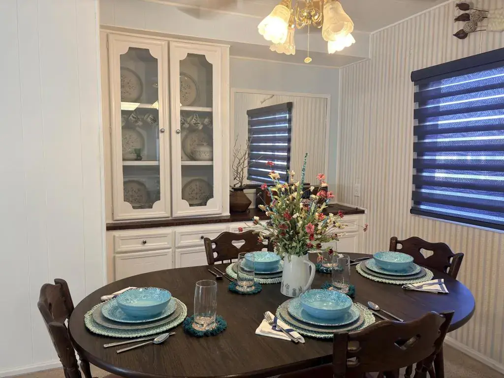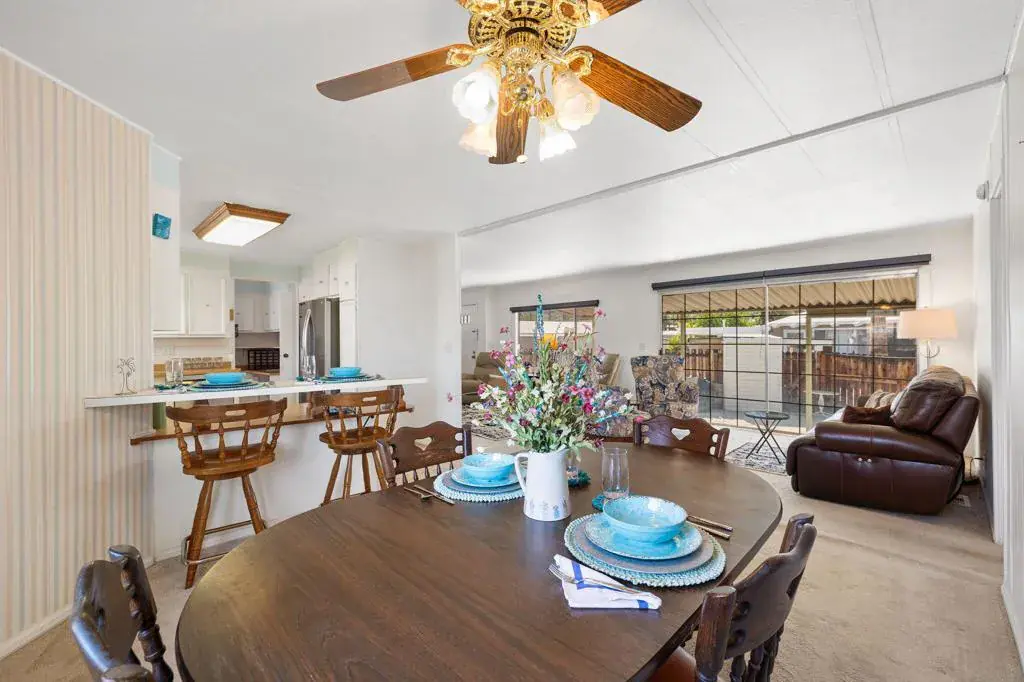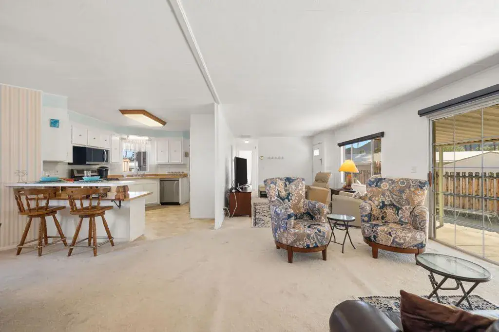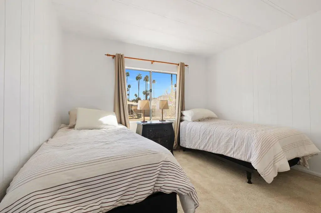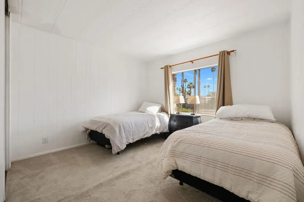 Located on LAND YOU OWN in the iconic Blue Skies Village, this lightly updated 3-bedroom, 2-bath double-wide mobile home offers 1,440 sq. ft. of comfortable desert living in one of Rancho Mirage’s most sought-after senior communities. Ideally situated near the clubhouse and pool, this home combines convenience, lifestyle, and value.The spacious primary suite features a walk-in closet and an en-suite bath with soaking tub and separate fiberglass shower. Two additional bedrooms provide flexibility for guests, office, or hobbies. The home includes newer kitchen appliances, an in-house laundry area with washer and dryer, and a thoughtful floor plan that lives easily year-round.A tandem two-car carport, private storage shed, and low-maintenance landscaping add everyday practicality. Monthly HOA dues of $432 include water, trash service, cable TV, and internet, making ownership simple and predictable.Blue Skies Village is a gated 55+ community known for its midcentury charm and amenities, including a saltwater pool, exercise room, library/card room, billiards, and the architecturally significant Tanner Hall, designed by renowned modernist William F. Cody. Just minutes from Eisenhower Medical Center, El Paseo, world-class dining, shopping, entertainment, and everything the Coachella Valley has to offer. Whether you’re ready to make Rancho Mirage home year-round or secure your place for the season ahead, opportunities like this are limited. See it now and start living the Blue Skies lifestyle while the season is at its best. Motivated seller!Home is being sold turnkey furnished with staging items and personal items excepted.