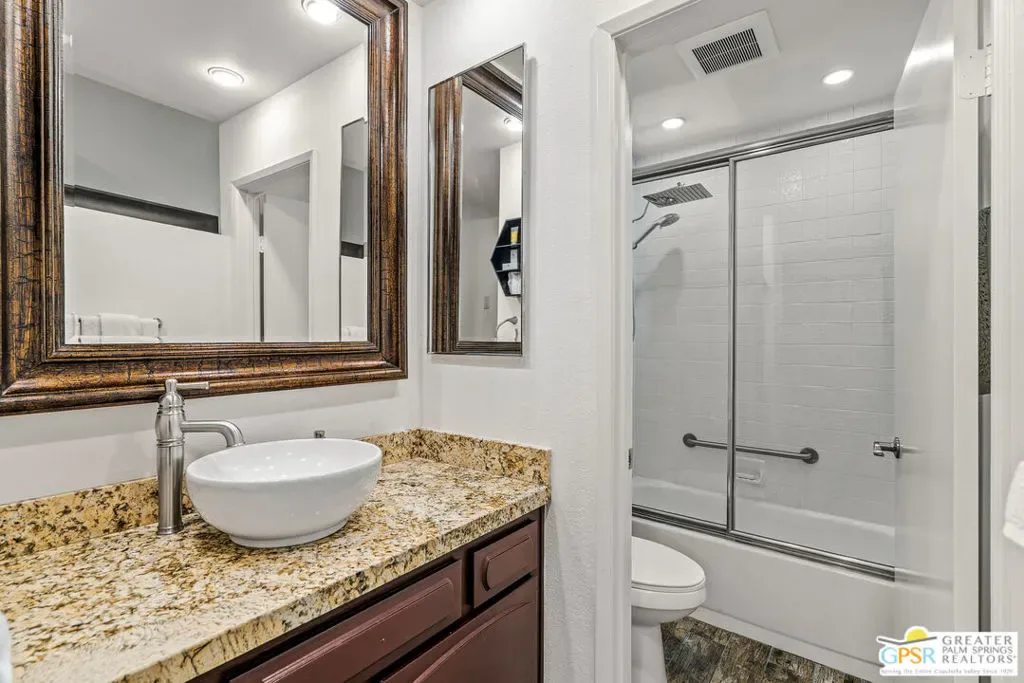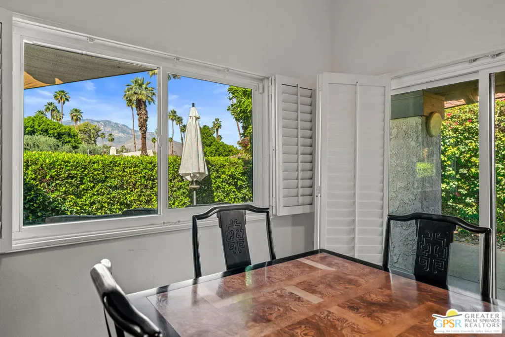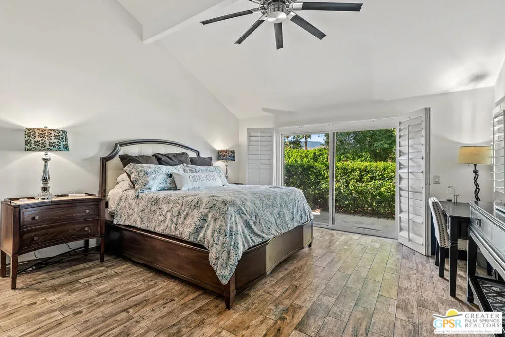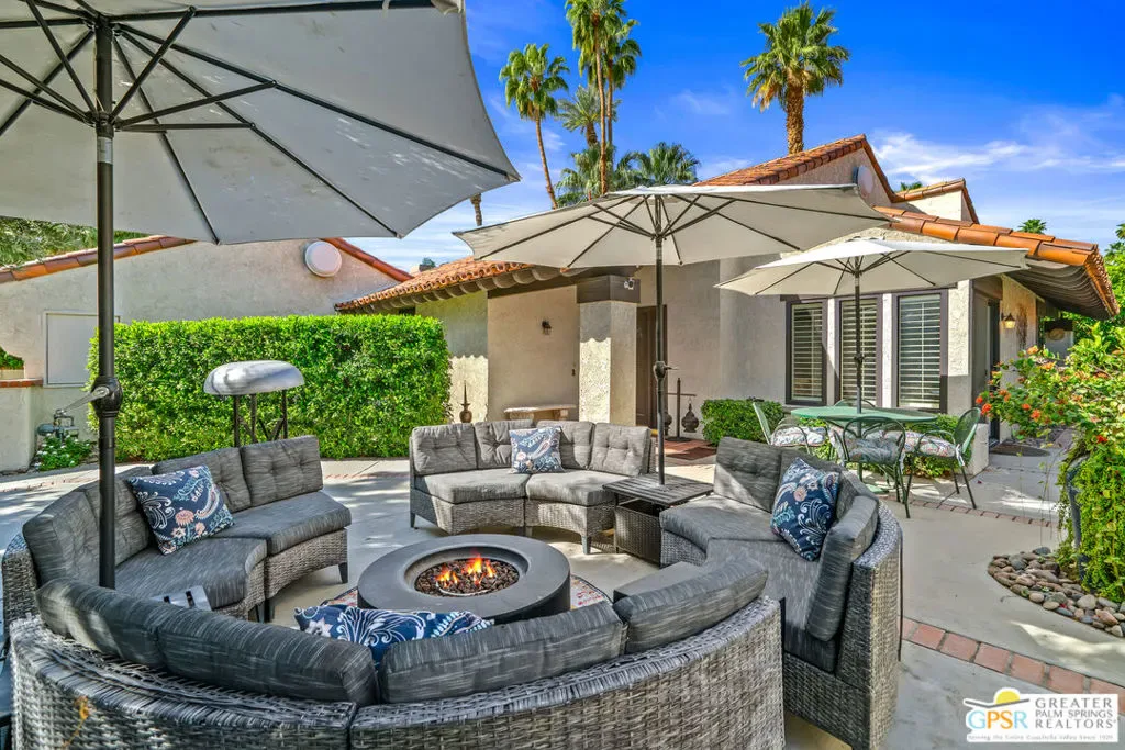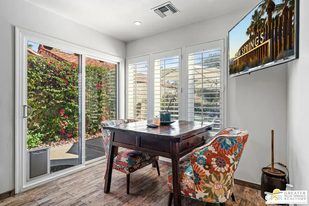 This home is set within the highly desirable Casas de Seville communityoffering a true resort lifestyle with four pools, four spas, tennis and pickleball courts, and beautifully maintained community lawns perfect walking /playing with your pets. The location provides both comfort and convenience, just minutes from the best of the greater Palm Springs area, including top theaters, restaurants, lounges, golf courses, and gaming. Set on land you own, this fantastic single-family home offers nearly 2,300 sq. ft. of open living space with soaring ceilings, abundant natural light, spacious patios, landscaped gardens, and stunning mountain views. Each spacious bedroom accommodates a king bed and features its own en-suite bath. Current owners use one as a home gym. The primary suite includes a large walk-in closet and walk-in shower oasis. The chef’s kitchen is perfect for entertaining, featuring a massive island and wine fridge. An oversized two-car garage with built-in cabinetry provides ample storage, along with plenty of guest parking. A new roof is the icing on top of this home. Furnishings available outside of escrow.