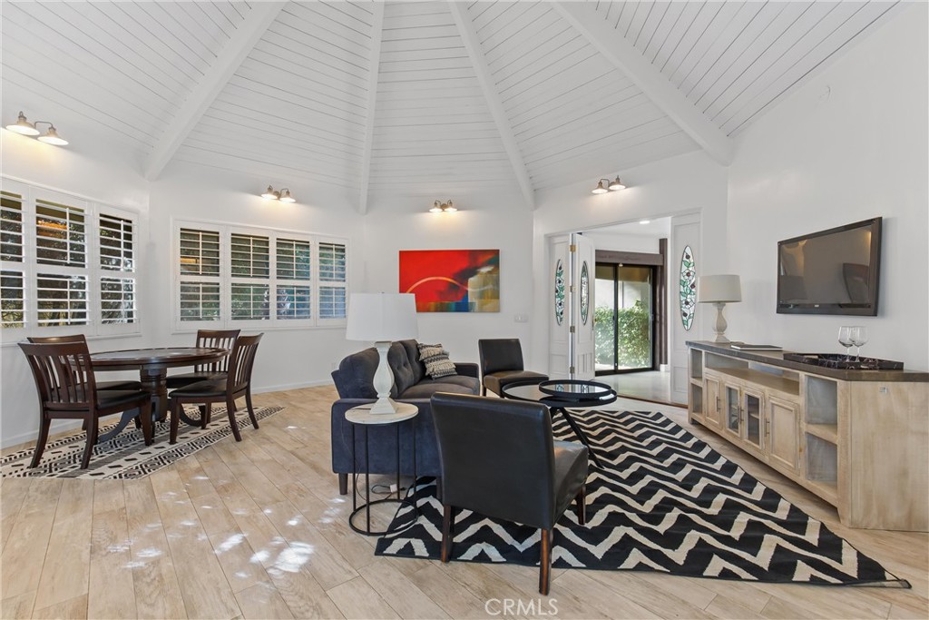 A recreation room with double door-stained glass entry & 24′ octagon-shaped room with high dome wooden ceiling features a layout designed to feel both expansive and intimate, highlighted by unique, creative angles. Abundant glass fills the interior with natural light and an unforgettable sense of style.