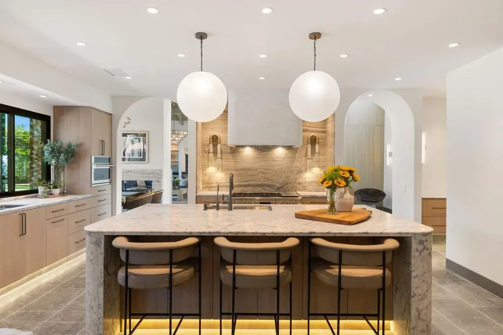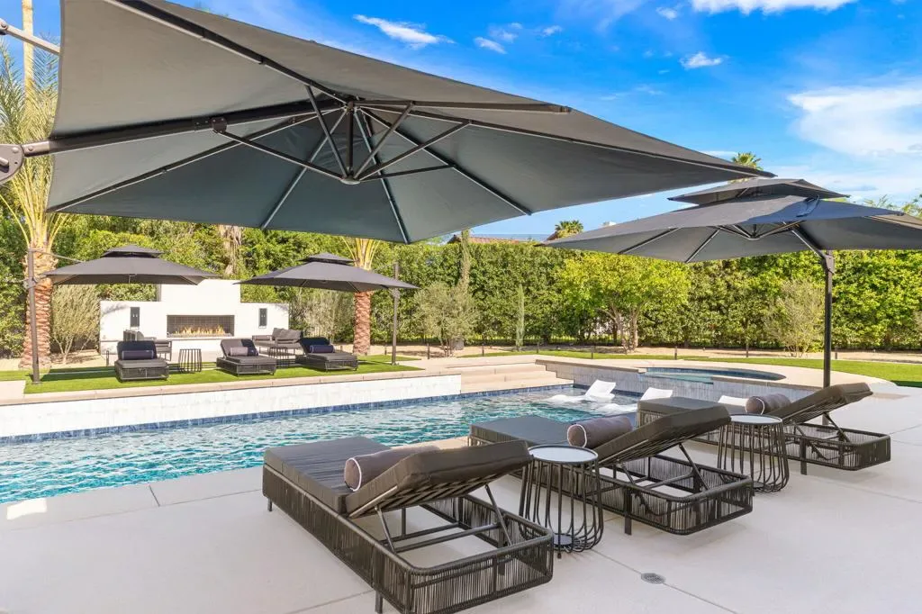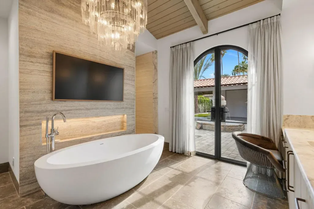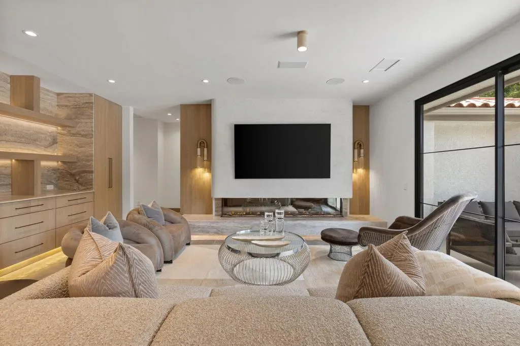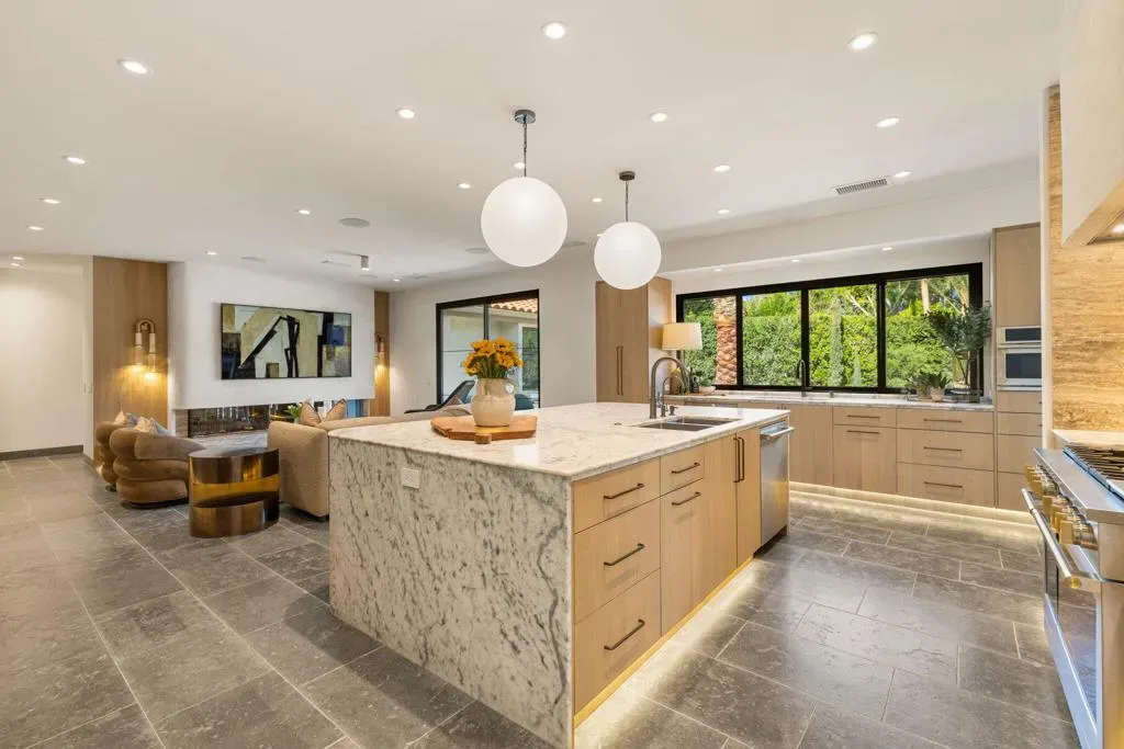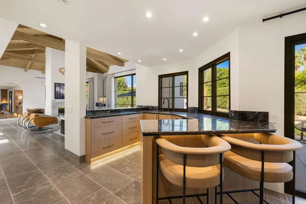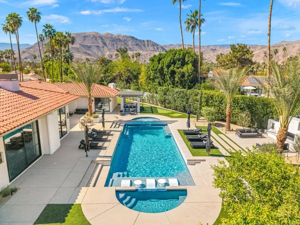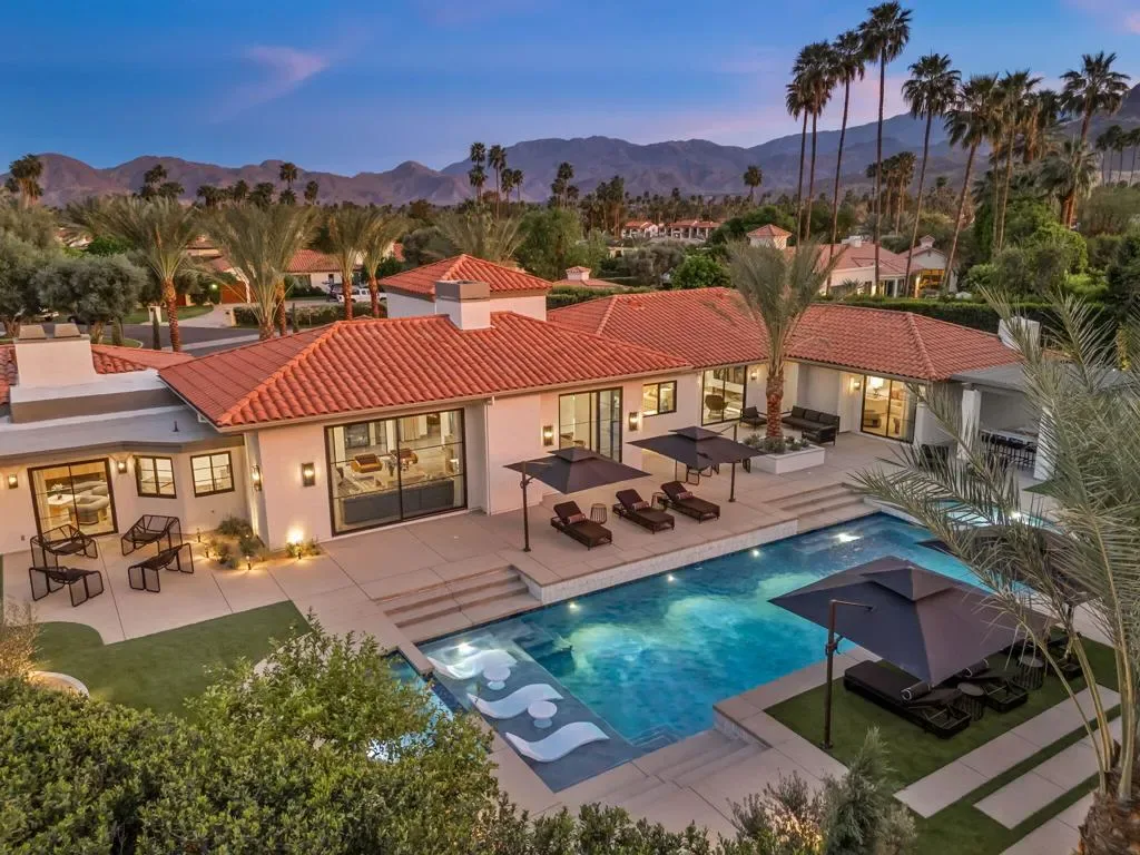 *Showings start Saturday March 21st* Welcome to 3 Clancy Lane S, a fully custom Mediterranean-modern estate in the heart of Rancho Mirage. Offered fully furnished, this 4-bedroom, 6-bathroom residence plus private office presents a rare turnkey opportunity. Thoughtfully redesigned from top to bottom, the home blends timeless architecture with refined modern finishes, highlighted by extensive custom stonework, white oak bespoke cabinetry, and statement designer lighting throughout. Soaring ceilings, exposed beams, expansive walls of glass, and limestone floors create a sense of scale while maintaining warmth and cohesion. The floor plan balances elegance and comfort, featuring formal living and dining spaces, relaxed lounge areas, and a striking chef’s kitchen anchored by a dramatic stone island, slab backsplash, custom cabinetry, and premium appliances. The primary suite is a private retreat with a fireplace, statement lighting, and dual spa-style bathrooms, while each guest bedroom offers its own beautifully appointed ensuite. Outside, the grounds unfold like a private resort–complete with a stunning pool and spa, Baja shelf loungers, expansive patios, and secluded lounge areas framed by mature landscaping. Fully custom, fully furnished, and truly turnkey, 3 Clancy Lane S is a rare estate offering in one of Rancho Mirage’s most coveted locations. Call the listing agent for your private showing today!