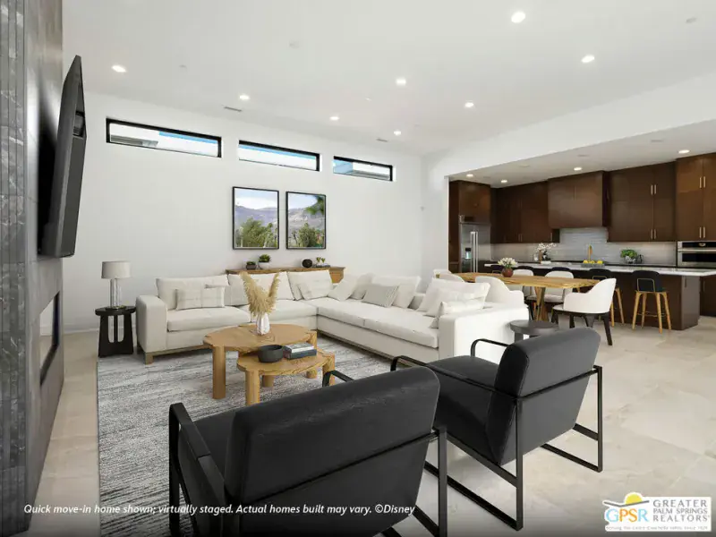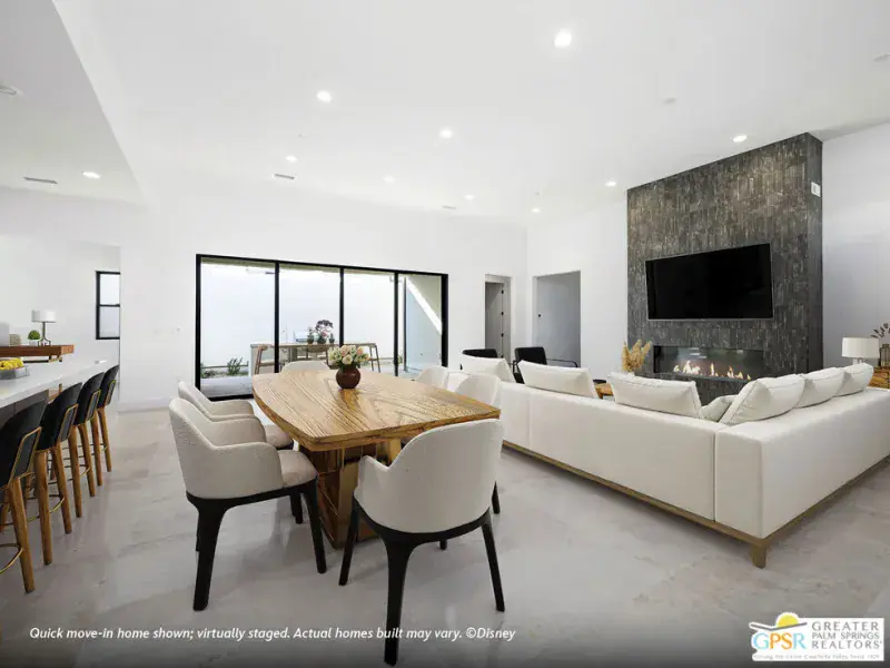 Welcome to Cotino, a Storyliving by Disney community, located in Rancho Mirage. Nestled in the serene Longtable Park section of the community, this exquisite 2-bedroom, 2.5-bathroom home (Atelier) by Shea Homes is thoughtfully designed for those 55+ who seek a harmonious blend of luxury and tranquility. Encompassing approximately 2,262 square feet, this residence invites you to experience resort-style living. The striking Agrarian exterior by Shea Homes sets the tone for character, while the open floor plan celebrates the seamless indoor-outdoor lifestyle that defines the Palm Springs area lifestyle. The gourmet kitchen, outfitted with high-end appliances, an elegant backsplash, and an oversized island, creates the perfect setting for entertaining and connection. The refined primary suite offers a sanctuary with a well-appointed bath and direct access to the outdoors. The secondary bedroom, complete with an attached bath, along with a versatile flex space, provides flexible living options tailored to your needs. Cotino combines natural beauty, charming parks, and the magic of Disney to create a unique and vibrant community — perfect for beginning your next chapter. Come see for yourself and experience all that this exceptional community has to offer.