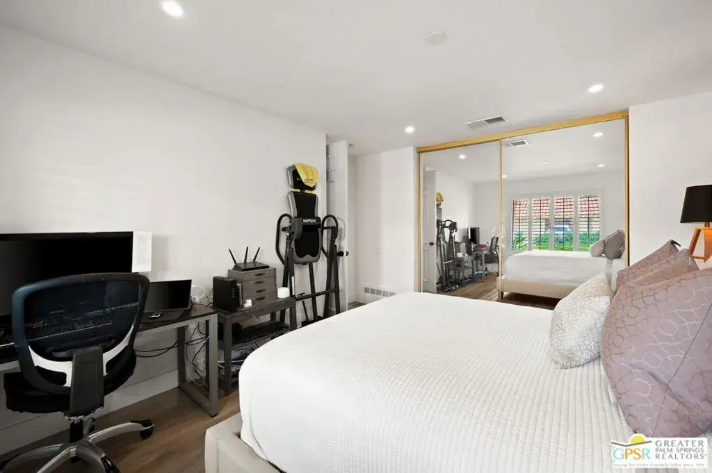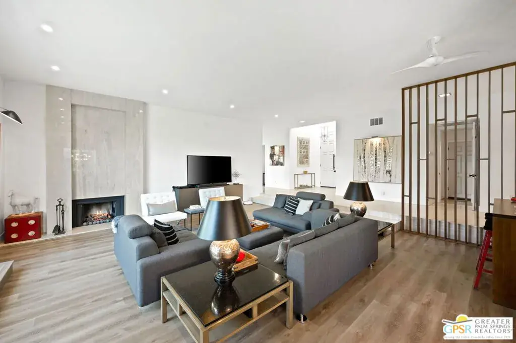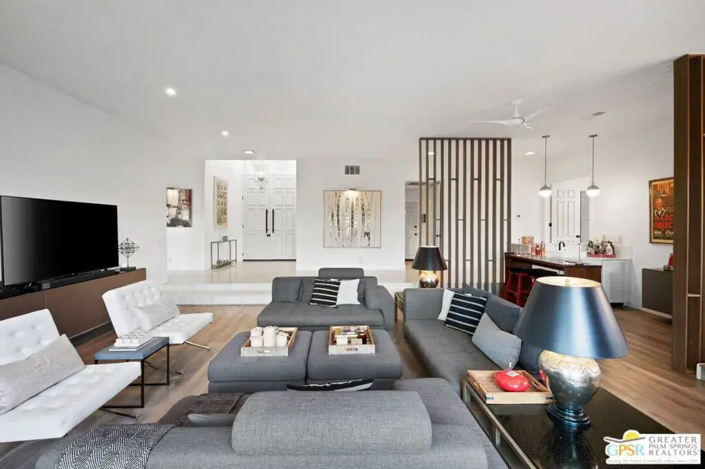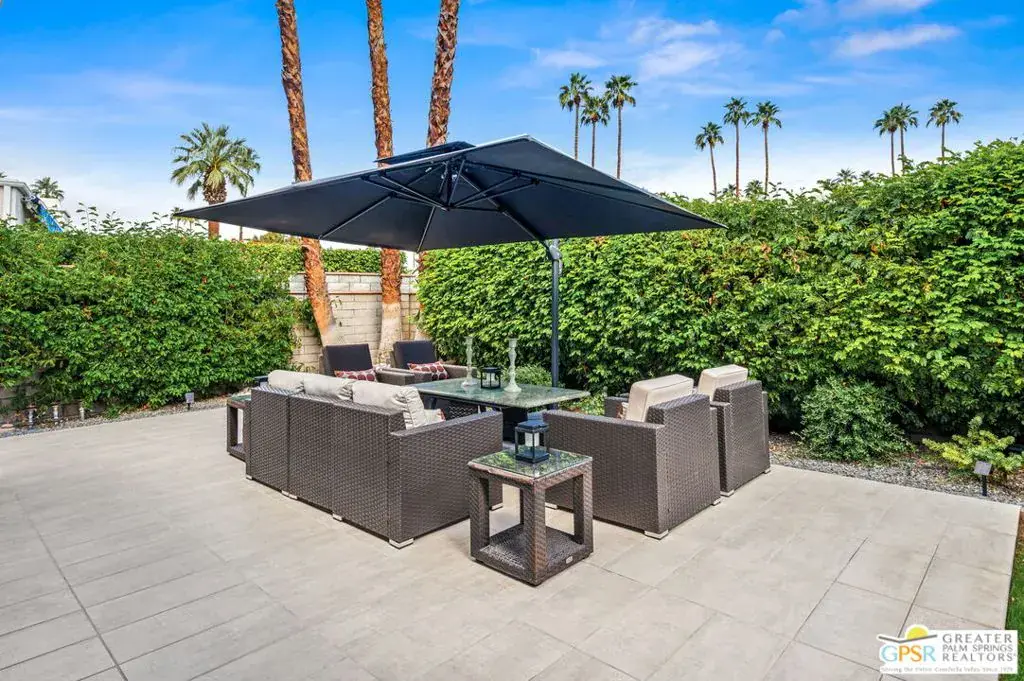 Welcome to Country Club Estates, a gated enclave of only 100 homes located in central Rancho Mirage. This expansive remodeled single family home with 3 bedrooms, 3 bathrooms plus a den/office and a 3 car garage blends seamlessly indoor/outdoor living with an elegant, spacious feel. Upon entering the gated courtyard, you are drawn into the foyer and beyond into the large living, dining, and wet-bar areas, all framed by sliding doors that lead to the multiple tiled outdoor patio spaces. The chef’s kitchen features stainless steel appliances and a large quartz-clad center island. All bedrooms are located down an oversized travertine walkway, complete with wired-in picture lights. The primary suite has direct access to a tiled atrium, filling the room with natural light and views of the manicured lawn and mature trees. The home includes a whole-house owned solar system. Resort-style amenities include tennis, pickleball, pool and spa, all just steps away from the house. Why aren’t you living here yet?