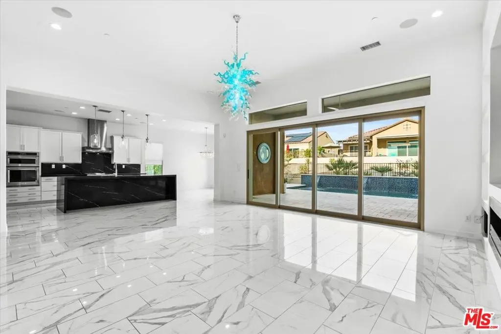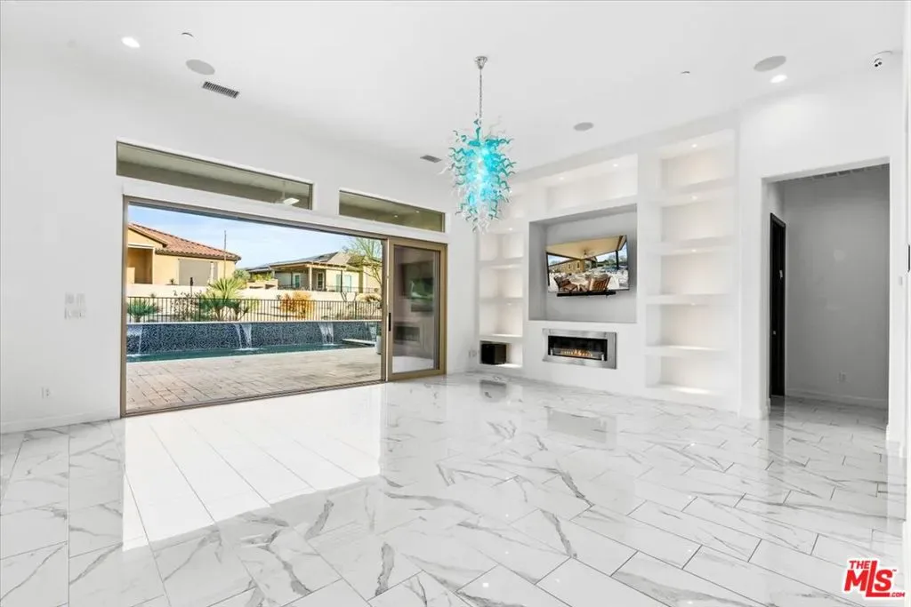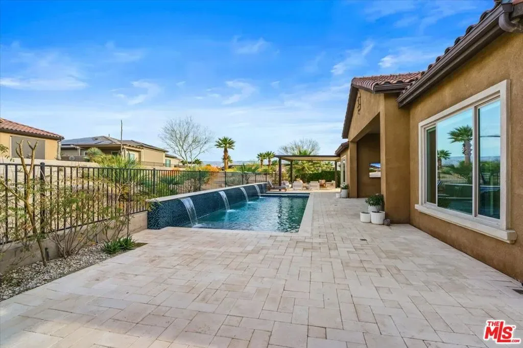 Welcome to 14 Merlot, located in a quiet pocket of Del Webb Rancho Mirage. Walking distance to the club house, where all the action takes place. This home is over 2500 sq ft of living space, it is an expanded version of the Journey model. When you arrive at this welcoming home, you see clean, detailed lines directing you to the fireplace in the living room and an outdoor oasis. The sparkling blue water pool is one of the longest in the community. It also has a spa and waterfalls. 2 Pergolas, covering the built in BBQ island outdoor kitchen. Inside the home, the kitchen is equipped with not one, but has 3 ovens, 2 full size and one convection. It is perfect for cooking your favorite meals. You will also see the largest Range from Kitchen Aid, stylish Quartz countertops throughout the home and backsplash in the kitchen. Ceramic tile flooring thought-out this home, the living room has a custom built in shelving with lighting, the home is pre-wired and a smart home. One of the most exciting things is the Premium stackable sliding doors, bring the outdoor in. Simply marvelous, as you enter the Primary bedroom, you see a second fireplace and an additional door to the outdoor playground. The spa like shower and large closet enhance the space. There is a casita/2nd bedroom has it’s own entrance for your guests. The Office/den can be used as a 3rd bedroom. If you are looking for a home that is move-in ready, filled with the highest end of upgrades, this is it. There are 38 solar panels leased at $277.00/month. Do not miss this rare home.