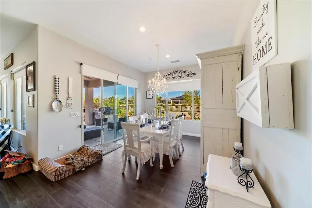 Experience effortless desert sophistication in this beautifully appointed Del Webb Rancho Mirage ‘Sanctuary’ model residence, where timeless design meets modern efficiency. Spanning 1,832 square feet, this light and airy home offers 2 bedrooms, 2 bathrooms, and a versatile den ideal for a private office, creative studio, or fitness space.Every detail has been thoughtfully curated–from the wood-look tile flooring and custom window treatments to the stylish pendant and recessed lighting, as well as fans in each room, create a warm, inviting ambiance. The gourmet kitchen showcases granite countertops, a spacious island, enlarged cabinetry, upgraded appliances, and elegant fixtures, blending beauty with function.Currently styled in soft, shabby-chic tones with crisp white accents, the home’s design can easily transition to a more contemporary or refined aesthetic. Step outside to enjoy serene greenbelt and mountain views framed by a low-maintenance and desert landscape–perfect for those who value both beauty and ease. Designed with sustainability in mind, this 2019-built home features water-saving toilets and showers, as well as assumable leased solar ($84/month).Residents can enjoy an exceptional array of amenities covered by the HOA, including a five-star fitness center with classes tailored to active adults, multiple swimming pools–featuring both a lap pool and resort-style pool–plus pickleball, bocce ball, and tennis courts. The beautifully appointed clubhouse offers meeting rooms and social spaces for a variety of activities and gatherings. HOA services also include upkeep of all common areas, landscaping, lighting, and shared pathways, as well as 24/7 security. A vibrant calendar of classes, events, and clubs ensures there’s always something to enjoy year-round.Ideally situated within a premier 55+ community, just moments from the shopping, dining, and cultural destinations of Palm Springs and Palm Desert, this residence offers the perfect balance of style, comfort, and location.