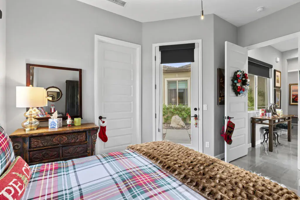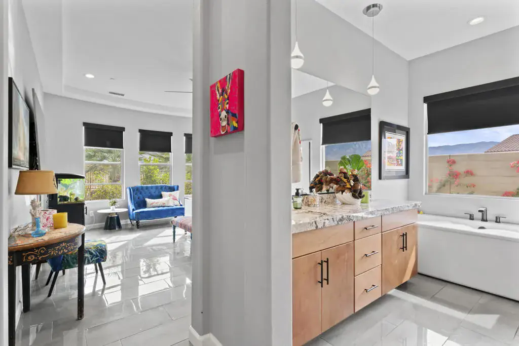 WOW!! The best deal in Del Webb Rancho Mirage!!!Welcome to this stunning highly upgraded home in the prestigious Del Webb community of Rancho Mirage. This spacious residence offers luxurious living with a thoughtful open-concept floor plan, ideal for both relaxation and entertaining. The home features 2 bedrooms and 2.5 bathrooms, providing ample space and privacy for all. The gourmet kitchen is equipped with high-end appliances, sleek countertops, with waterfall edges, perfect for the culinary enthusiast. The expansive living and dining areas boast large windows, the dining area has been expanded, which adds to the natural flow of the home. Large windows allow for the natural light and offer stunning views of the surrounding desert mountains.The primary suite is a true retreat, featuring a spacious bedroom, walk-in closet, and a spa-like en-suite bathroom with separate vanities, a free-standing soaking tub, and a separate large shower. The large Primary closet is complete with closet organizers which allows for additional storage. The additional Casita is generously sized, with plenty of closet space and an en-suite bathroom. The den/office is large with custom shelving and can be converted to an additional bedroom. Step outside to the private backyard oasis, which includes a beautifully landscaped yard, a covered patio, and a beautiful fireplace, ideal for enjoying the beautiful mountain views. The home also includes a two-car garage and a laundry room for convenience, with a separate golf cart garage.
