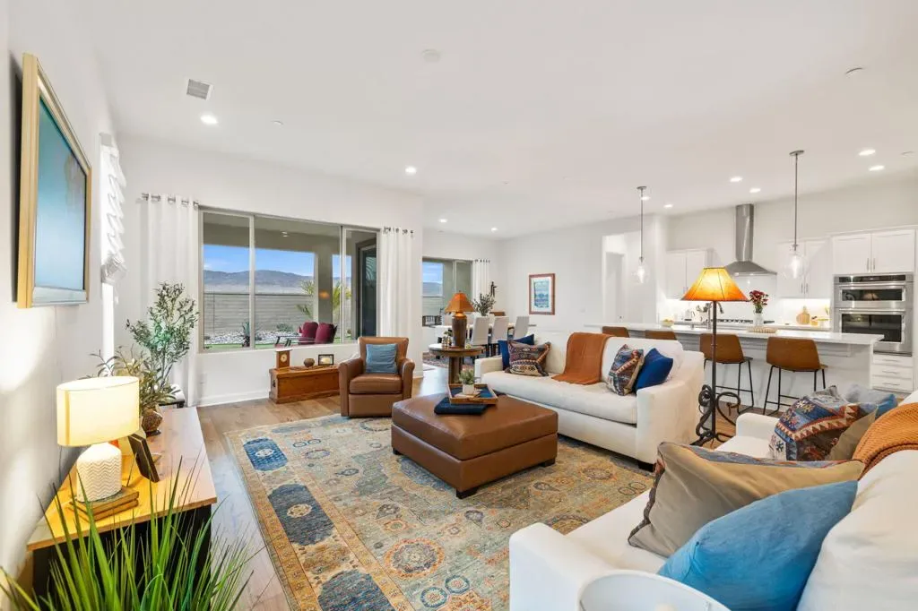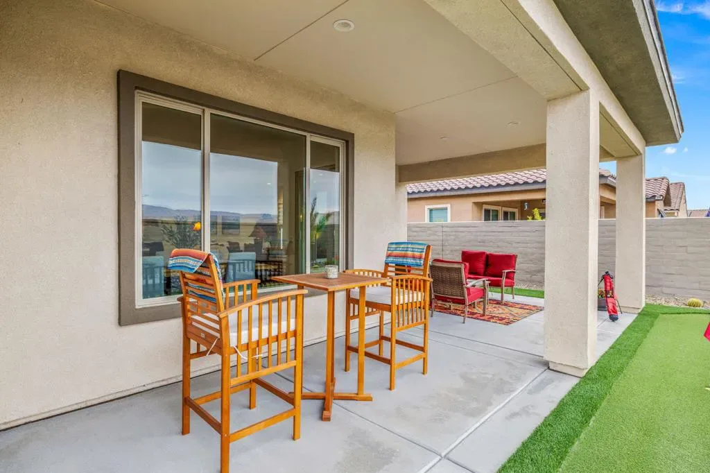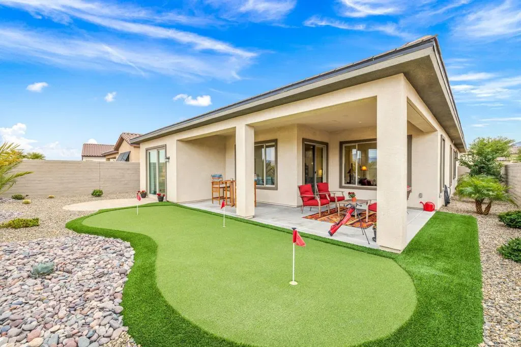 Welcome to 84 Prosecco, a beautifully crafted home in the highly desirable Del Webb Rancho Mirage community. Designed for modern desert living, this 2,008 sq. ft. residence offers an ideal blend of comfort, style, and functionality. Featuring two spacious bedrooms, two bathrooms, and a versatile den, the layout easily adapts to your lifestyle–whether you need an office, media room, or an additional space for guests.The open-concept great room creates a seamless flow between the living, dining, and kitchen areas, making it perfect for both daily living and entertaining. The chef’s kitchen stands out with premium appliances, generous counter space, a large island, and excellent storage. Expansive windows bring in abundant natural light and capture serene views of the surrounding mountains, giving the home a warm, airy, and inviting feel throughout the day.The primary suite offers a peaceful retreat, complete with a spacious walk-in closet and a well-appointed bathroom. The guest bedroom and bath are positioned thoughtfully for privacy, making hosting friends and family effortless. The den provides added flexibility, enhancing the home’s overall livability.Enjoy the mountain views from your backyard. Practice putting from your private 3-hole green!Your garage stats cool too, with an AC split installed.As part of Del Webb Rancho Mirage, residents enjoy an impressive array of resort-style amenities designed to elevate everyday life. The 20,000 sq. ft. clubhouse includes a state-of-the-art fitness center, aerobics studio, golf simulator, billiards room, library, wine room, and a beautiful multi-purpose ballroom. Outdoors, choose between covered or open-air pools, relax in the sunshine, or stay active with tennis, pickleball, and bocce courts, as well as a putting green. More than six miles of walking and biking trails wind through the community, offering scenic routes and opportunities to stay connected with nature.A vibrant calendar of clubs and activities–including book clubs, dance classes, social gatherings, and hobby groups–creates endless ways to meet neighbors and build community. For golf enthusiasts, the world-renowned Mission Hills golf course is just minutes away.At 84 Prosecco, you’re not simply purchasing a home–you’re embracing a lifestyle centered on connection, recreation, and relaxation in one of the most sought-after 55+ communities in the Coachella Valley.