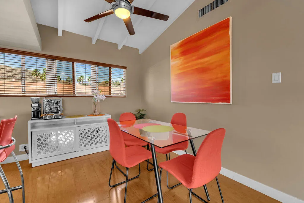 Desert Braemar is where timeless desert charm meets effortless living–and Unit 260 captures it beautifully. Set within a private, gated 55+ Co-Op community in Rancho Mirage, this residence offers tranquil views of the serenity garden, green landscaped spaces and pathways, and the surrounding mountains from its inviting balcony. The interior offers vaulted beamed ceilings and is thoughtfully updated with an open-concept granite and stainless kitchen, generous counters and bar tops, and a spacious bath featuring double vanities and a stylish walk-in shower–designed for comfort, simplicity, and ease.Plus, a stack washer/dryer is included too.Here, the lifestyle is as impressive as the setting. Residents enjoy a resort-style collection of amenities including pool and spa, tennis and pickleball courts, lawn bowling, a putting green, fitness center, and a welcoming garden room with a full kitchen and outdoor entertaining spaces, and has a full seasonal calendar of events and activities.Walk to nearby eateries, cafes, shopping, and walking trails. Even more appealing, the HOA includes property taxes, water, cable, internet, and exterior maintenance and grounds care–creating a truly low-maintenance experience. Whether you’re seeking a comfortable desert retreat or a full-time residence, Desert Braemar offers a sense of place that feels both peaceful and connected.