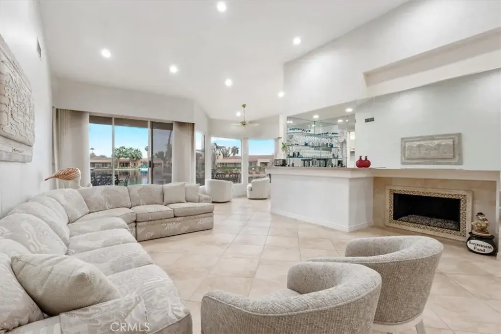Experience luxury lakefront living in this beautifully maintained one story, 3-bedroom, 3-bath, 2,625 sq ft residence located in the prestigious guard-gated Lake Mirage community. This highly desirable floor plan offers abundant natural light, high ceilings, an open-concept design, and seamless indoor-outdoor flow. The spacious step-down living room features a cozy fireplace, wet bar, and an inviting layout perfect for entertaining. Each bedroom offers direct access to its own bathroom, including two primary suites with oversized spa-inspired baths. Primary bathrooms include soaking tubs, separate showers, double sinks, and private toilet areas for added comfort and privacy. Take in breathtaking lake and southern mountain views from the expansive waterfront patio and your private dock. Enjoy resort-style amenities including 11 pools/spas, 10 tennis courts, 4 pickleball courts, clubhouse, fitness center, plus boating, kayaking, and an attached 2-car garage with direct access – minutes to shopping, dining, and Palm Springs Airport.