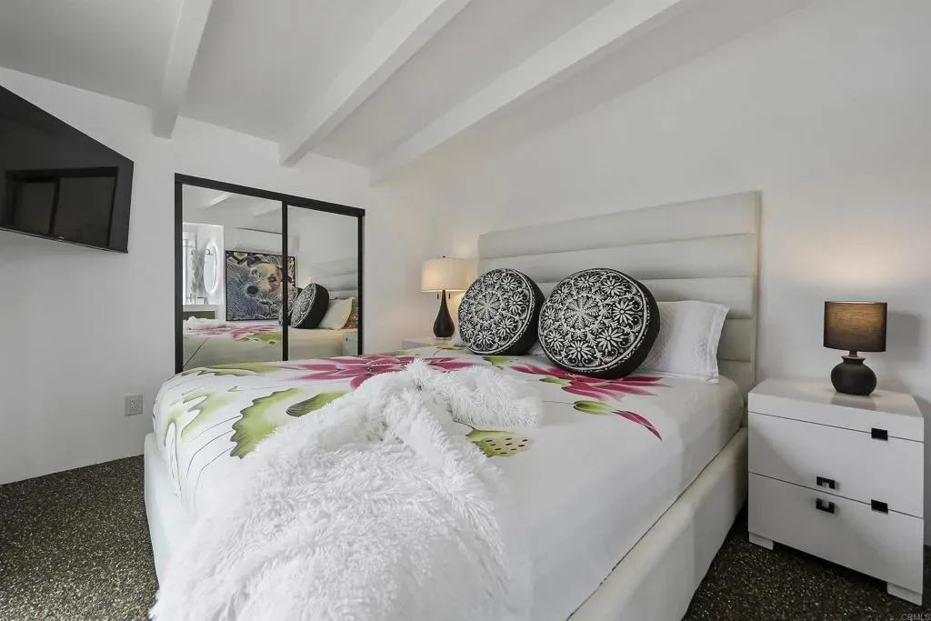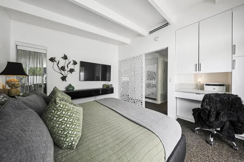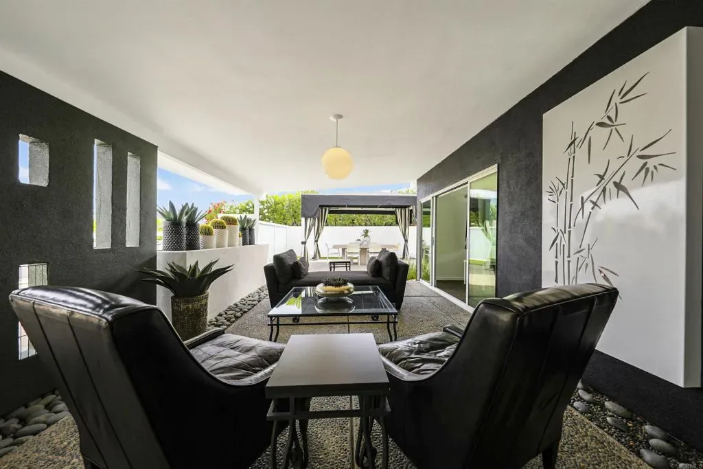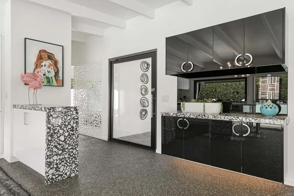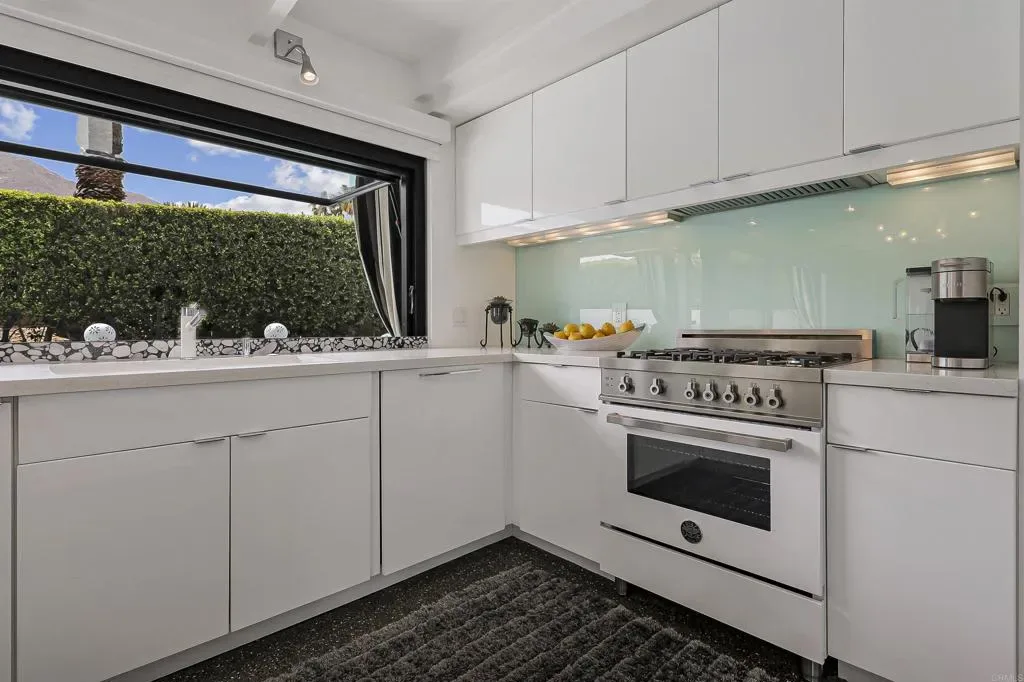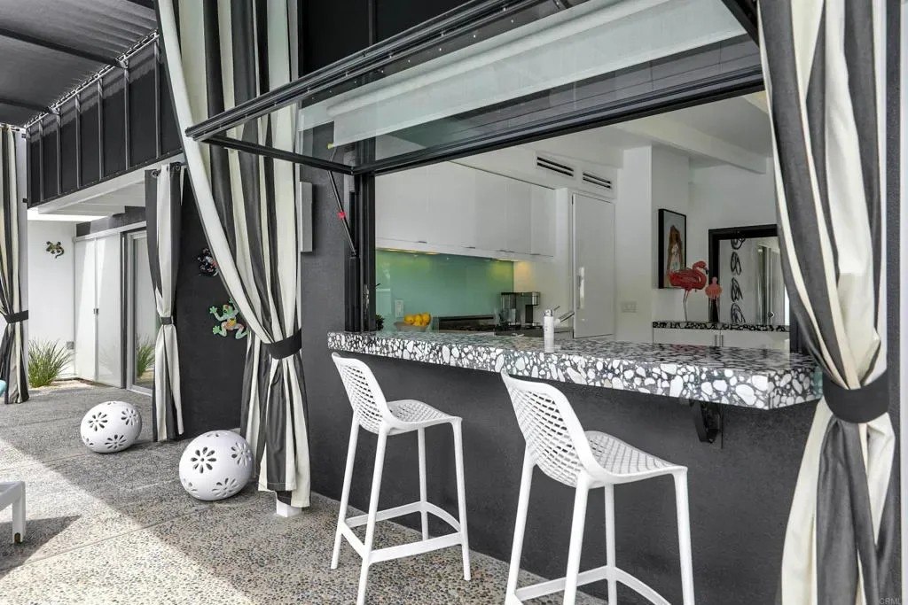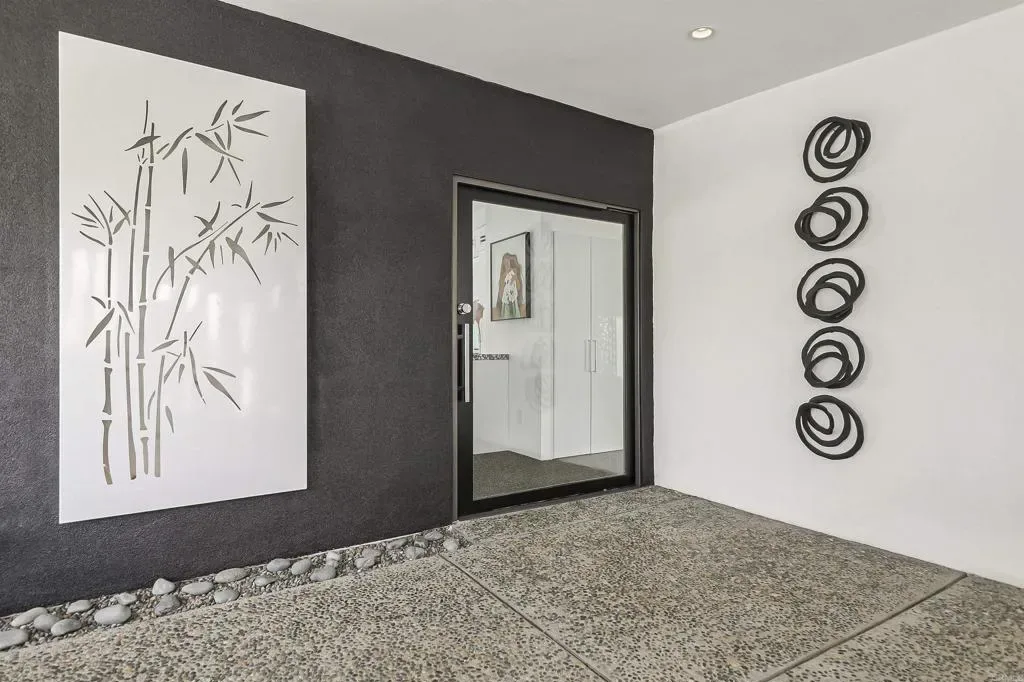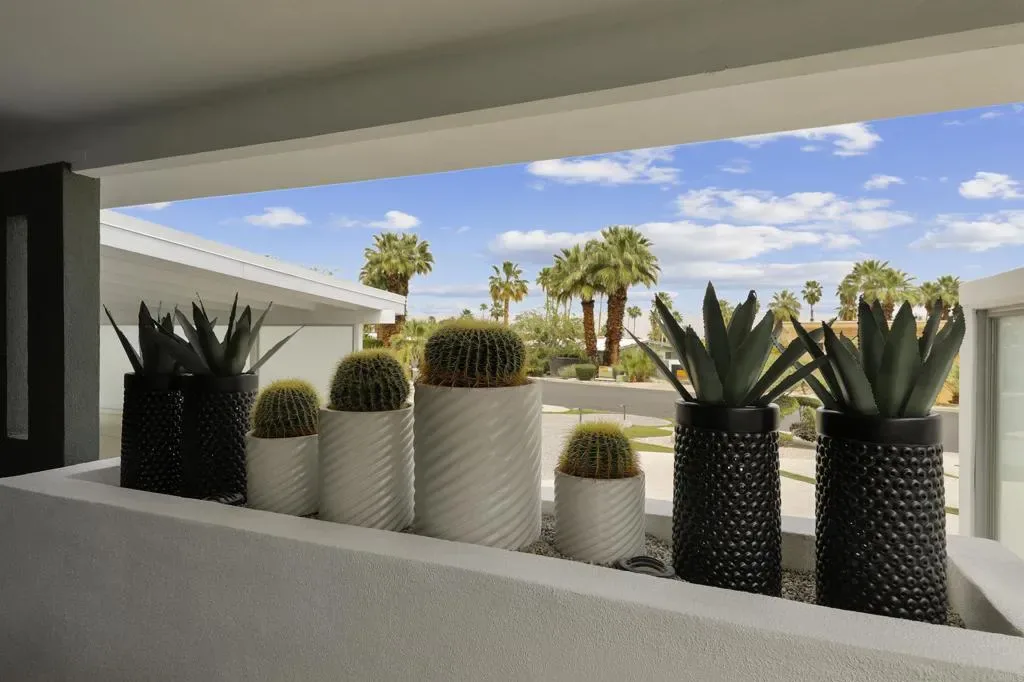 This beautifully reimagined 1956 mid-century residence in coveted Magnesia Falls Cove captures the essence of classic desert modernism with stunning mountain views. A striking arrival begins with custom gates, architectural entry walls, and curated desert landscaping, opening to a private courtyard that sets a serene, sophisticated tone. Inside, light-filled spaces and an open-concept floor plan create effortless flow for both everyday living and entertaining, seamlessly connecting to the outdoor retreat. The thoughtfully designed kitchen features Bertazzoni and Bosch appliances, quartz and marble surfaces, a mint glass backsplash, and a flip-up serving window for true indoor-outdoor living. Clean lines, custom built-ins, pebble-tech flooring, and a dramatic pivot entry door reflect a refined interpretation of mid-century design while offering modern comfort throughout. A detached bonus casita provides flexible space ideal for guests, a private office, or studio (not included in square footage). Furnishings are offered per inventory, creating a seamless turnkey desert retreat that allows buyers to move in and immediately enjoy the lifestyle this home provides. Outdoors, a classic kidney-shaped pool, outdoor shower, multiple lounge areas, and a cozy fireplace create a private resort-like setting, all perfectly positioned to take in breathtaking mountain vistas. Just minutes from the shopping and dining of El Paseo Shopping District, as well as world-class golf, this exceptional property offers a rare opportunity to own a true desert retreat where style, privacy, and location converge.